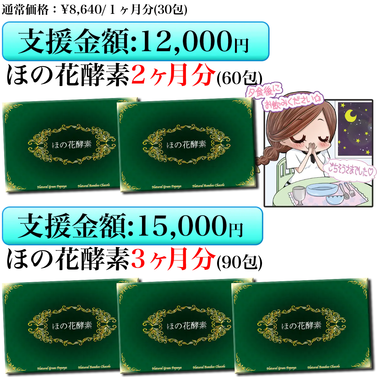 『ほの花酵素』1ヶ月分(30包入)¥8,640-での販売予定です。