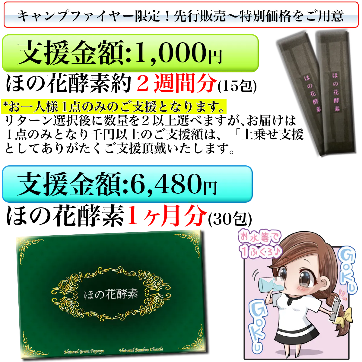 *サイトの仕様上、目標金額の達成有無にかかわらず支援をした時点で申し込みが確定し、支援後のキャンセルやプラン変更はできません。よくご検討の上ご支援ください。