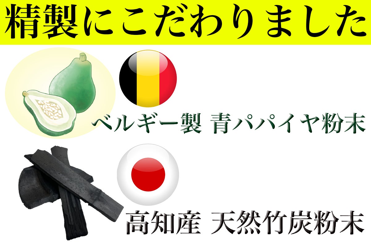 還元麦芽糖水飴(国内製造)、青パパイヤ粉末(ベルギー)、竹炭粉末(国内製造)/V.C、香料、甘味料(アスパルテーム)