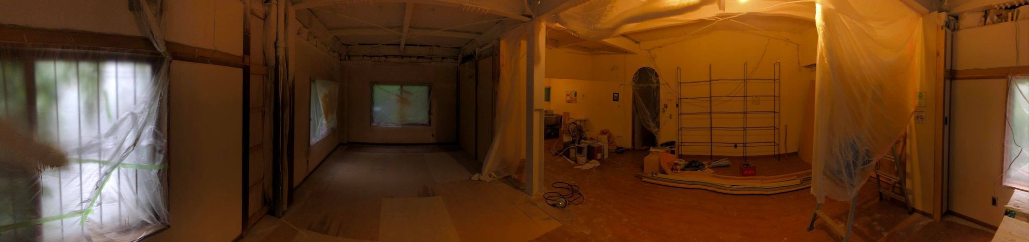 (添付しました写真は現在スケルトン状態の建物内部で、17坪のここが書店に生まれ変わります。携帯で撮ったパノラマ写真なので、ちょっとわかりにくいかもしれません。。すみません!)