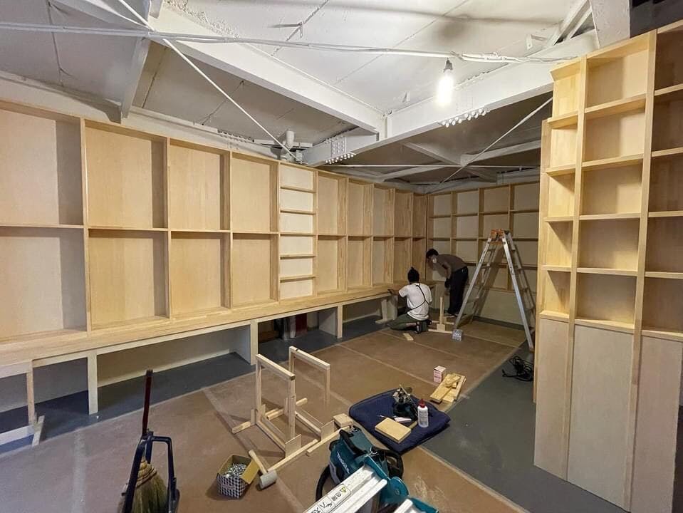 10月の書店OPEN(10月後半になりそうです)に向けて工事が進んでいます。棚の高さや、動線の確保など、書店経験のない私たちは様々な人のアドバイスや「書店の作り方」のような本を参考に内装を決めていきました。