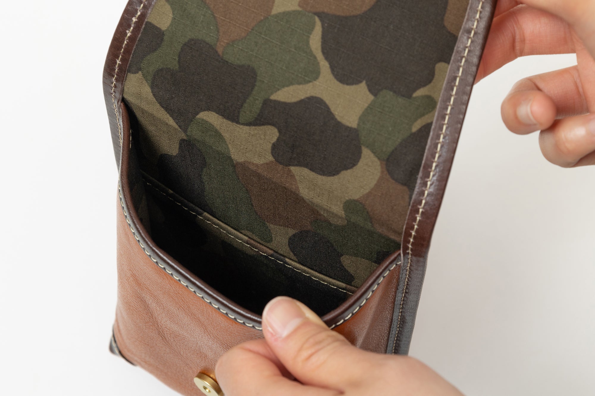 裏地にはカモフラ柄のコットン生地を使用しました。
