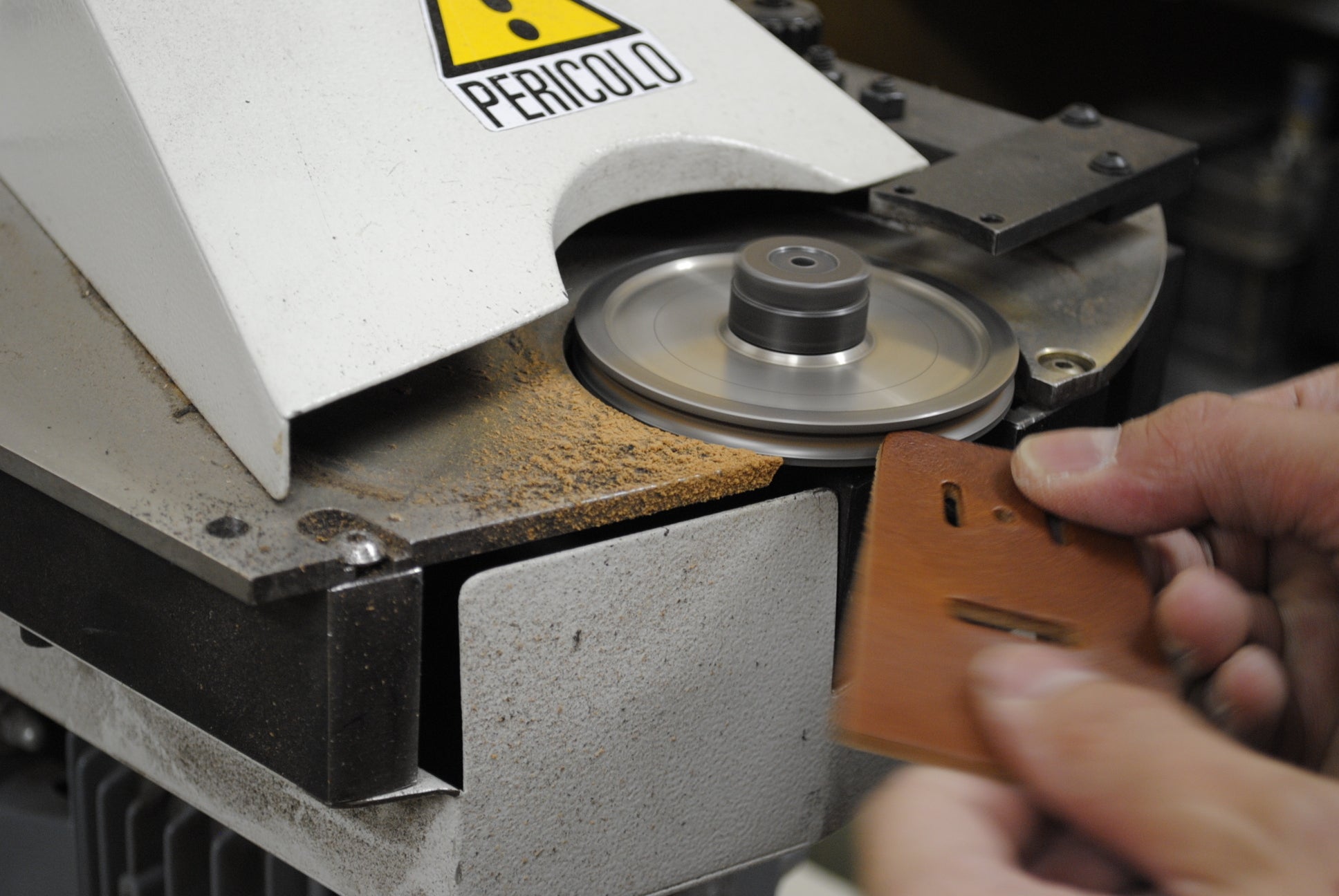 擦れることが多い角には、さらに革を当てて補強しています。