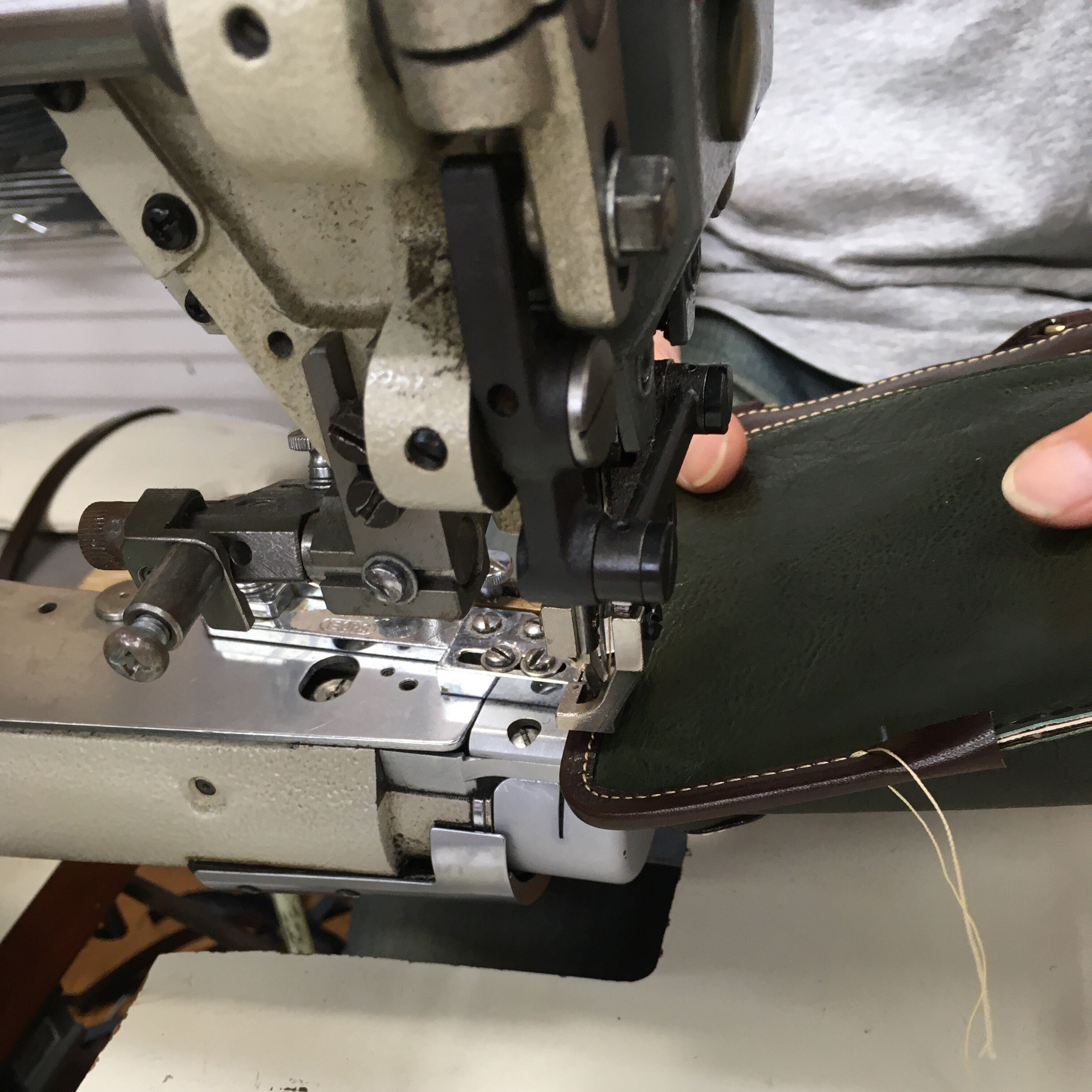 いつも応援、ご支援頂きありがとうございます、野崎製作所です!ご支援頂きましたレザースコッシュの生産が大詰めです!本日は鞄の総仕上げ、「まとめ」工程を行っています。腕ミシンという腕がせり出したように見えるミシンで、革の縁を巻いていきます。バインダーというアタッチメントをミシンに取り付ける事で革の縁を安定して巻く事が出来ます。この工程はInstagramに動画も上げたので是非ご覧下さい!この後、検品と仕上げ工程を経て、皆様にお届けとなります。もう少しお待ち下さいませ。