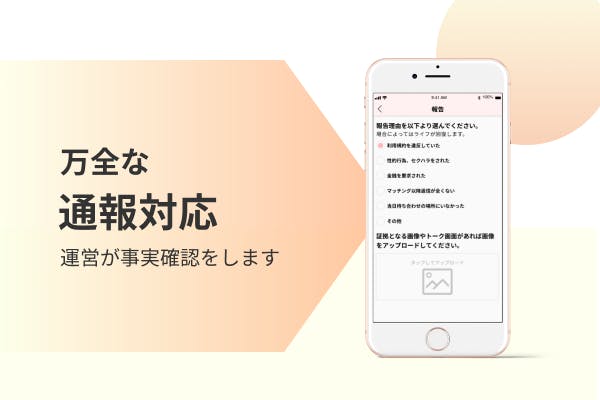 安全のために本人確認を必須に。完全個別の通報対応。過去あった人からの評価制度も導入しました。