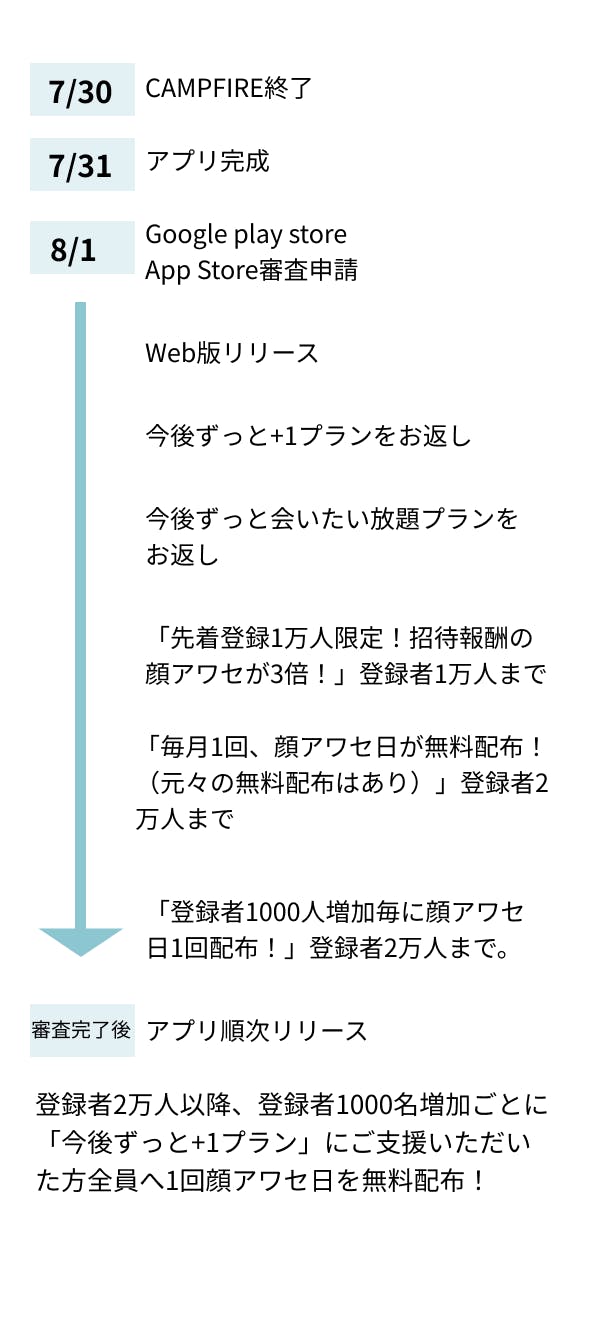 A:開発状況によって後ろ倒しされる可能性がありますが、7月末を予定しています。どんなに遅くとも8月末にはリリースいたします。進捗状況につきましてはメッセージからご連絡いたします。