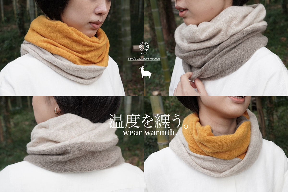 今日は、その日の気分で色遊び、ねじりスヌードついて