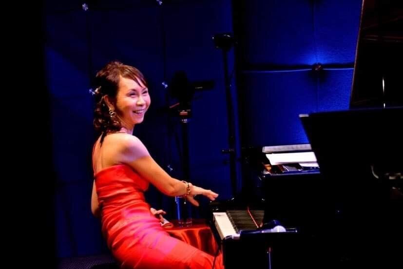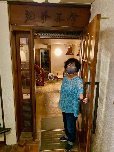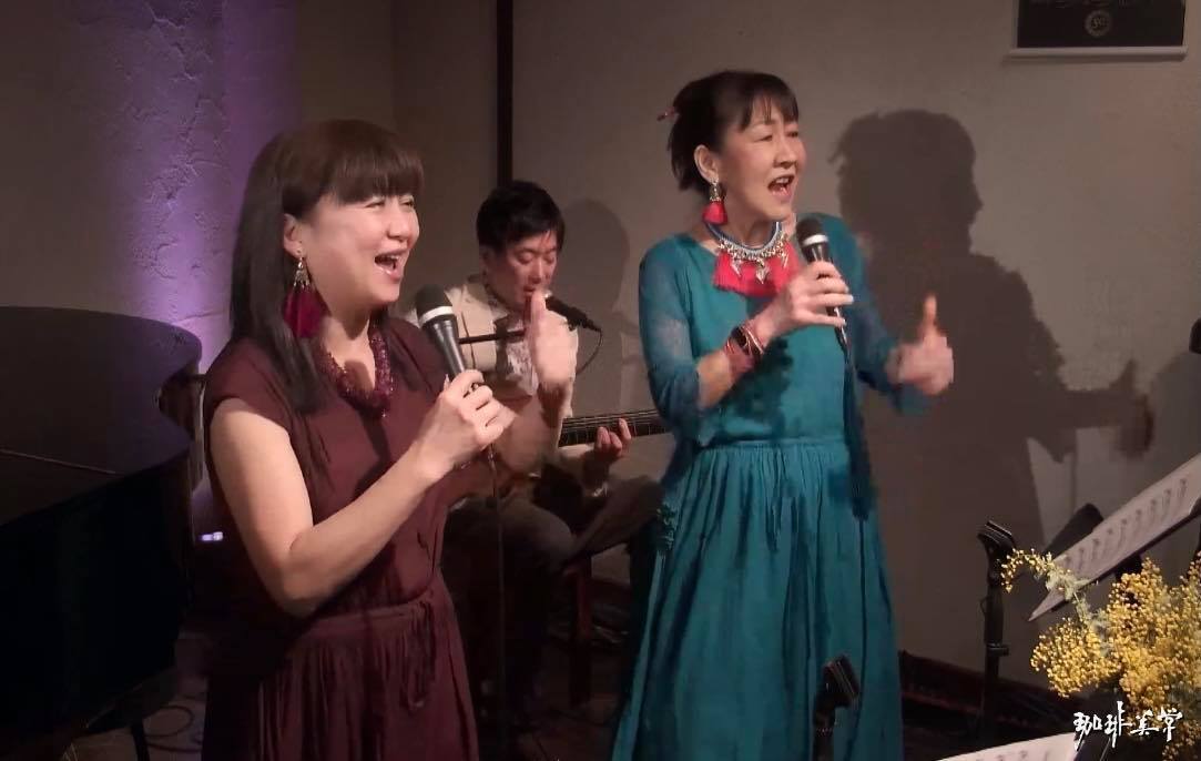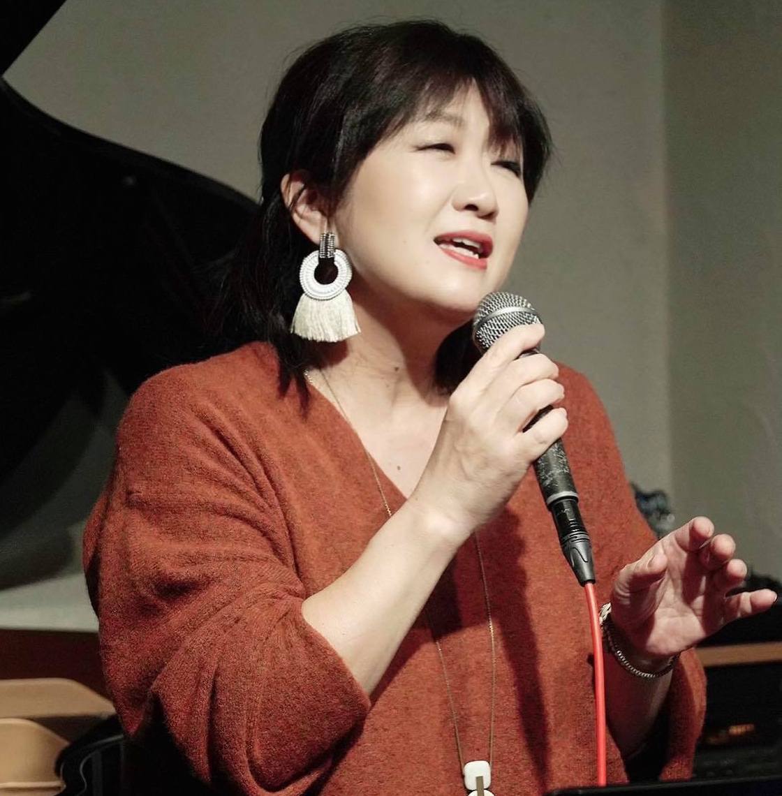 河原厚子さん(Vocalist) 学芸大学の商店街から階段を降りて扉を開けると、ふ〜っと昭和映画の世界に飛び込んだような暖かい気持ちになれる《珈琲美学》そして美枝子ママのピカピカした明るい声