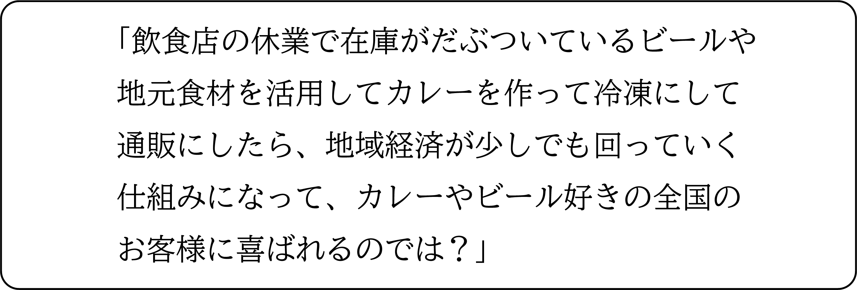 大半の飲食店主は日々の業務とやりくりに手一杯で、資金的にも時間的にも取り組む余裕がありません。小規模な飲食店でも、そして1商品からでも通販に着手できるような仕組みを作ります。