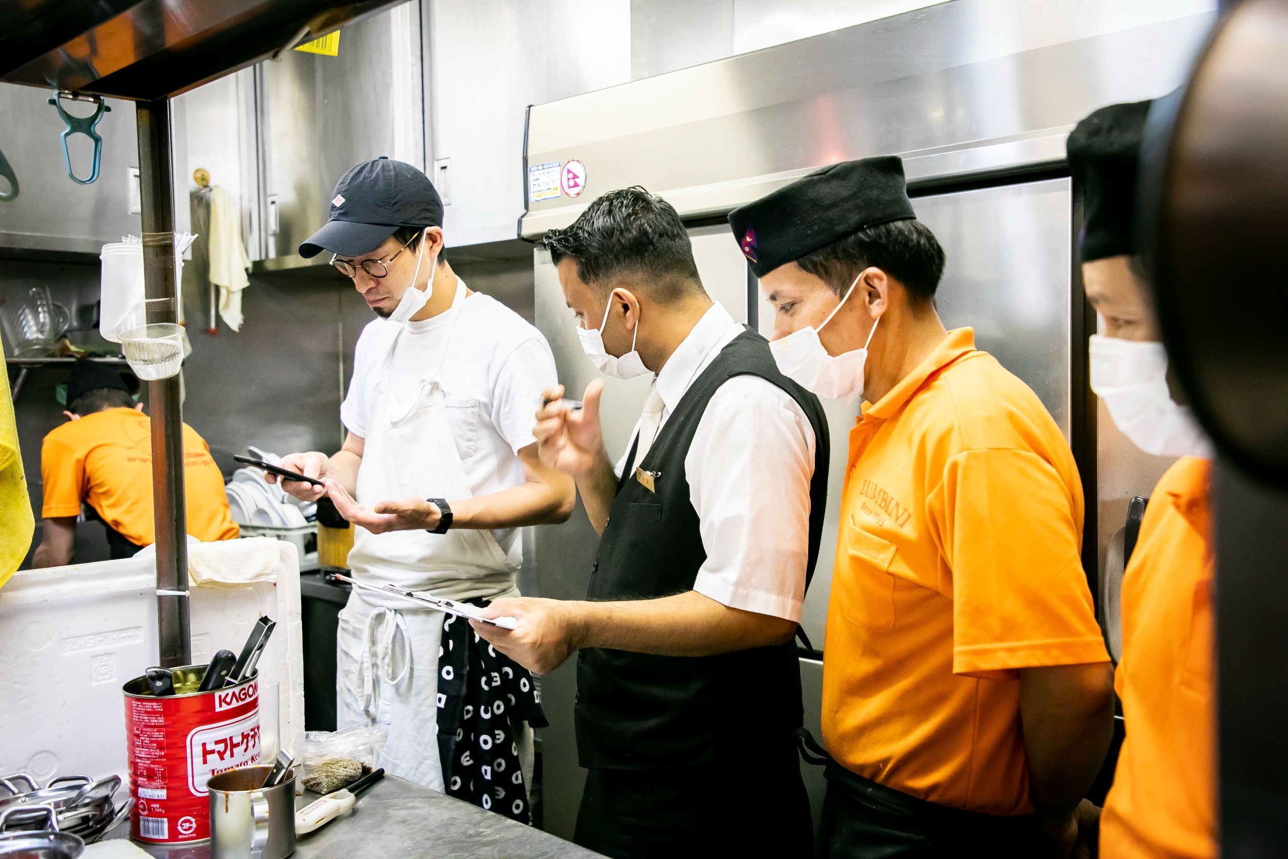 レシピに従ってたくさんのカレーを製造するために、ルンビニのネパール人シェフたちが頑張ります!これから試作を繰り返し、理想の味に仕上げます。