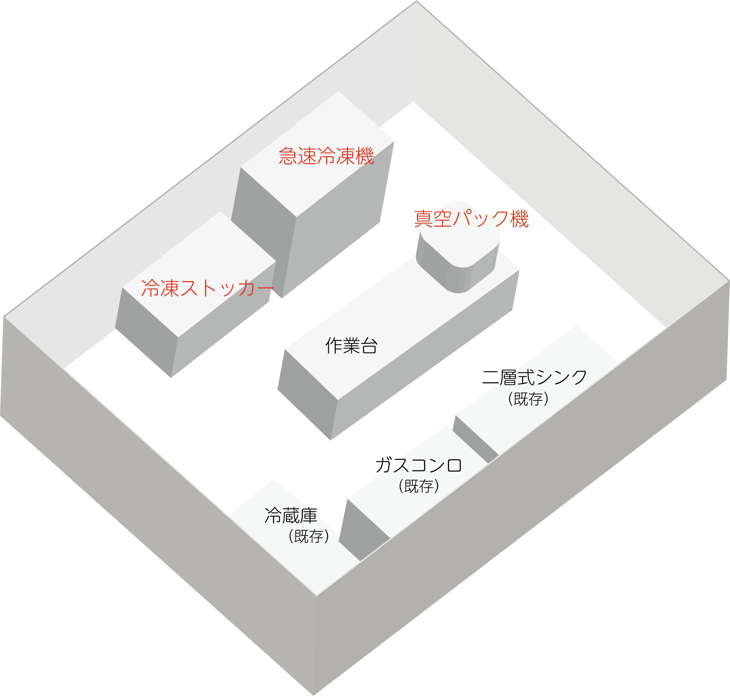 設備的には急速冷凍機と業務用真空パック機ならびに商品を発送するまで冷凍保存する冷凍ストッカーも必要です。
