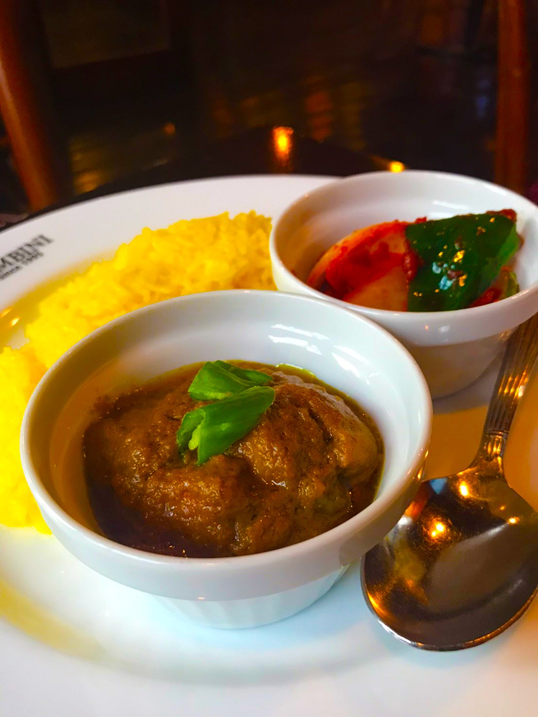 柏カレー倶楽部はルンビニ柏店にて毎月第3金曜日の午前7時半に開催されております、カレーを食べながらの気軽でフレンドリーな朝活です。毎回2種類のカレーとサフランライスをワンコインで召し上がっていただきます。今月は前述のビアカレーと、ルンビニ常設メニューの「チキンチリ」です。