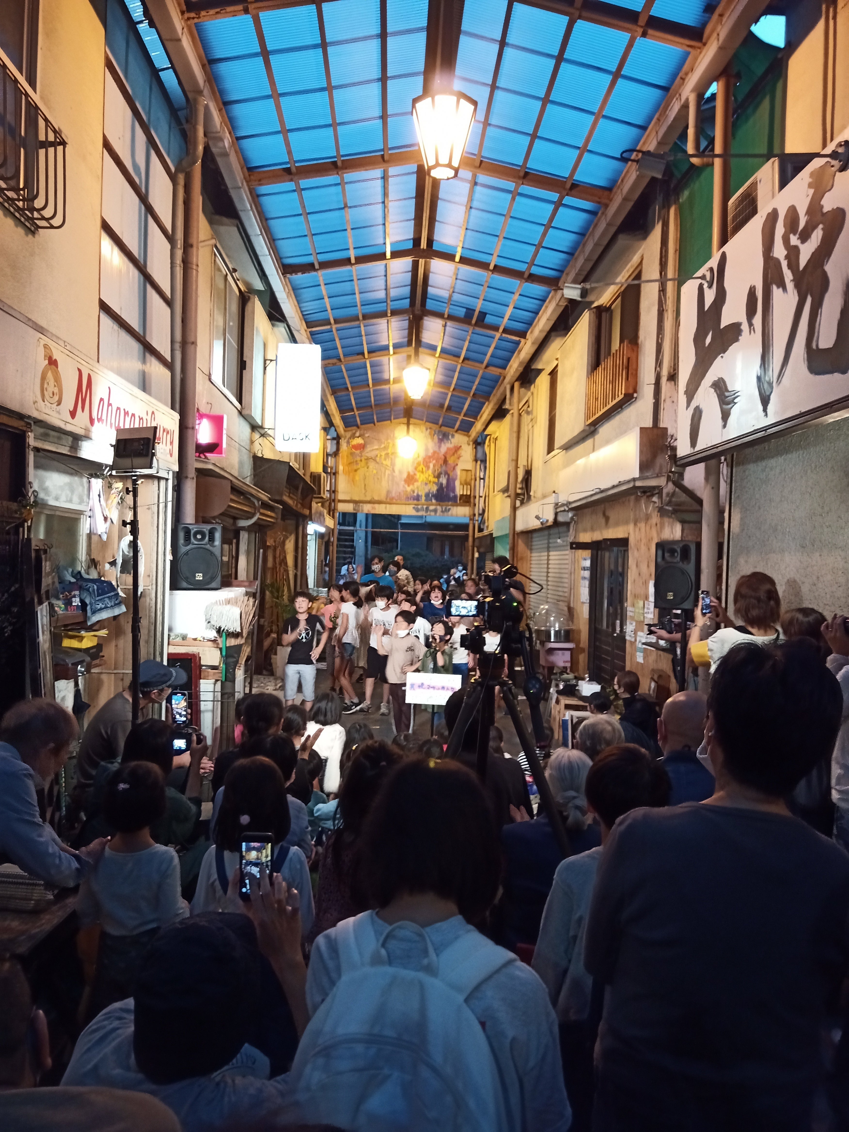 夜10時を過ぎ、いい感じて人流も落ち着いてきた。詩人が朗読のパフォーマンスをし、スタッフ1人ひとり、思いを述べた。