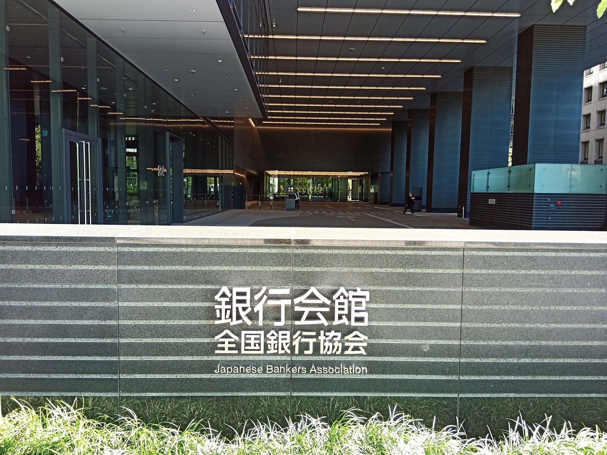 そこからゆっくり東京駅へ向かう途中に、偶然通りがかったのが全国銀行協会の建物。パクチー銀行頭取、計らずもそこに到達。ネタに使った。