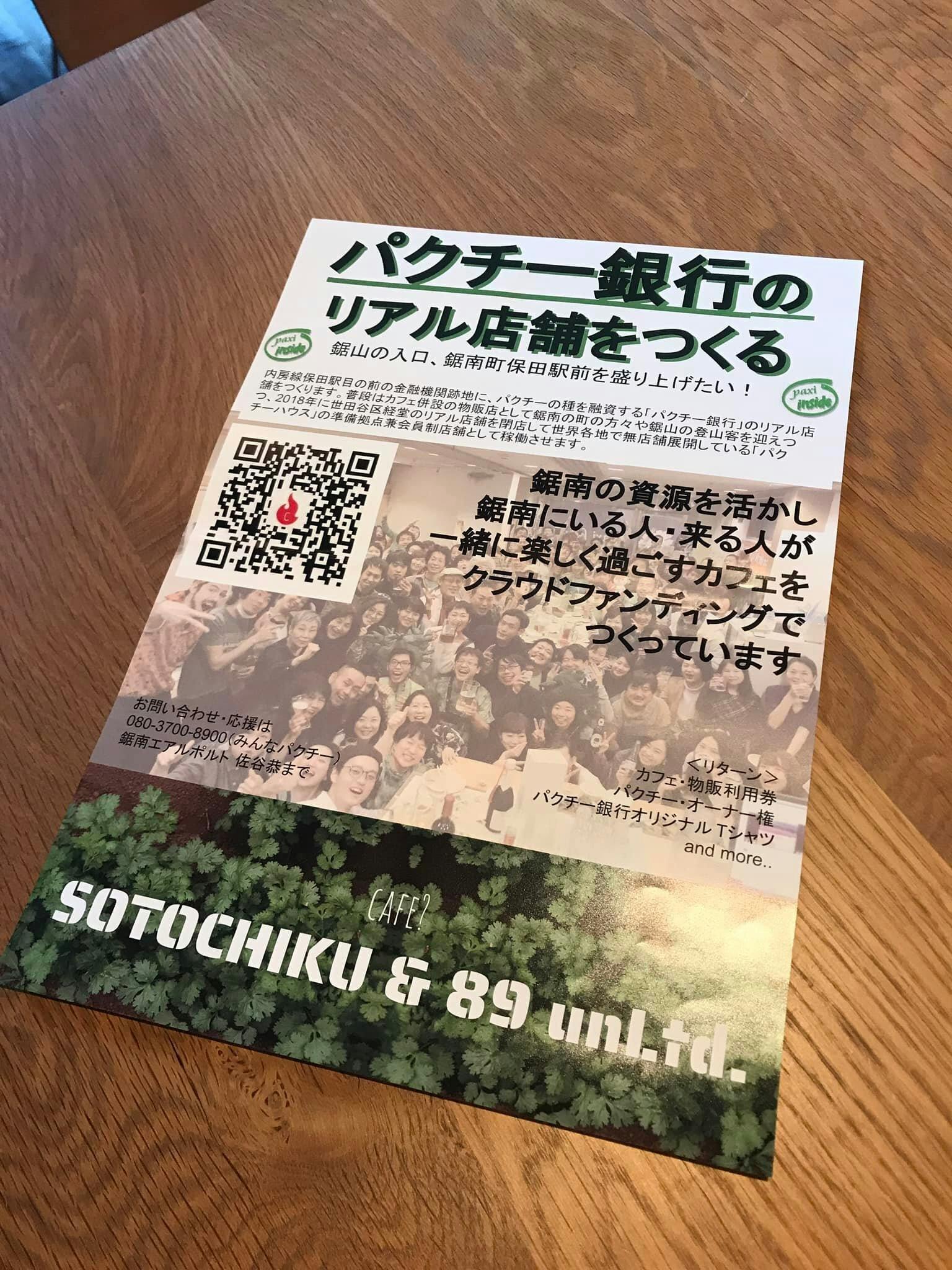 「パクチー銀行」は開くまではもちろん、開いてからも、「よく分からない」場所でありたい。思考停止して、これは「カフェである、以上!」と思い込むこともできるけど、僕は「どうなるか分からないこと、ただし、僕自身はめっちゃ楽しめること」を積み重ねていく。そこで起こる「事故」は、まるで奇跡のような体験だが、実はそれを起こすのは日々の小さな営みだと思うから。