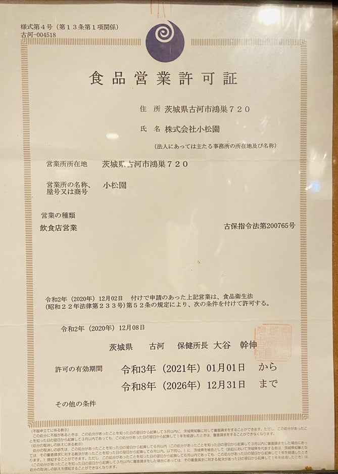 ◯ 事業者の連絡先:Tel: 0280−48−1245 メール: info@komatuen.com