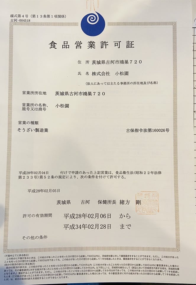 ◯ 販売事業者名:株式会社小松園