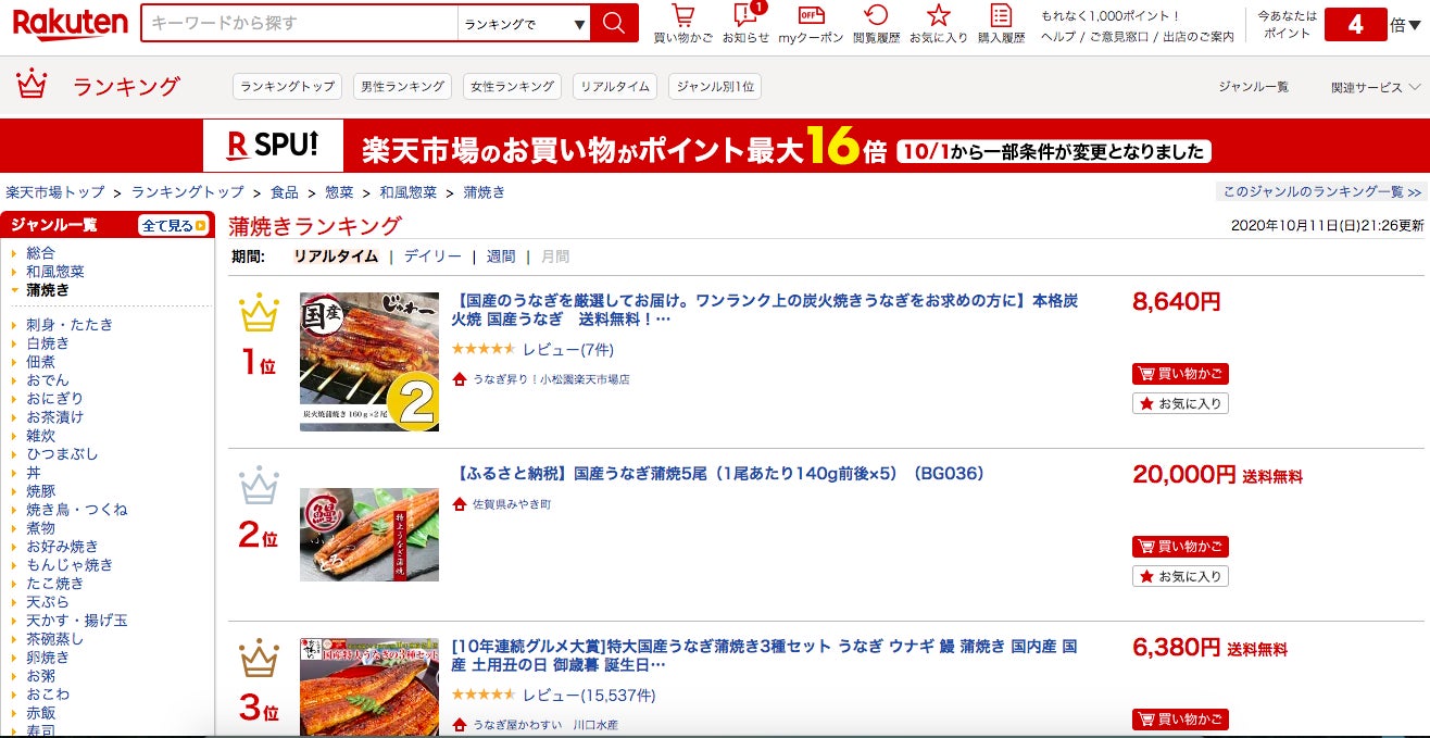 また、楽天市場にて蒲焼き部門ランキング1位を2度獲得。