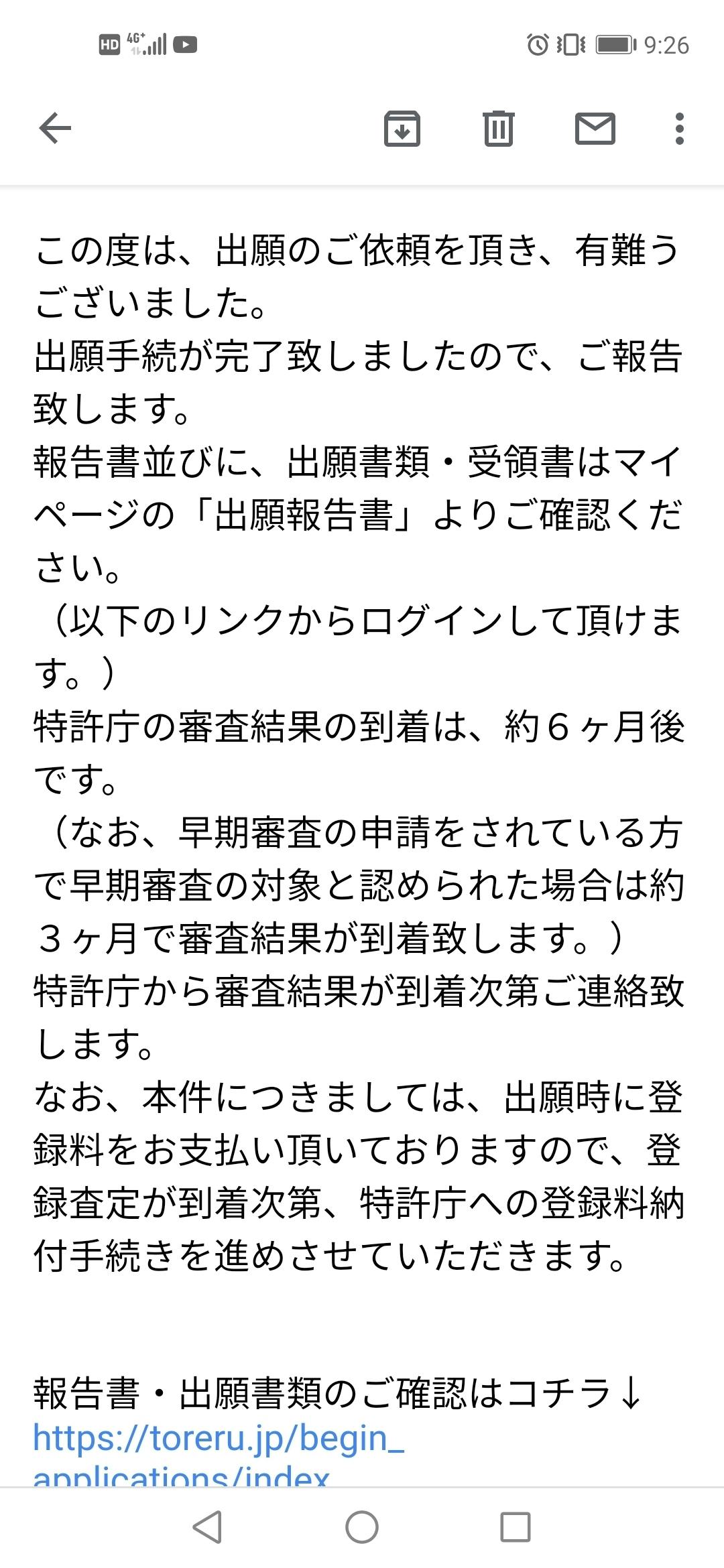 商標登録についての現状は、先月21日にToreru.jpさまから商標登録出願済みのお知らせをいただき、約6ヶ月後の審査結果を待っています☆