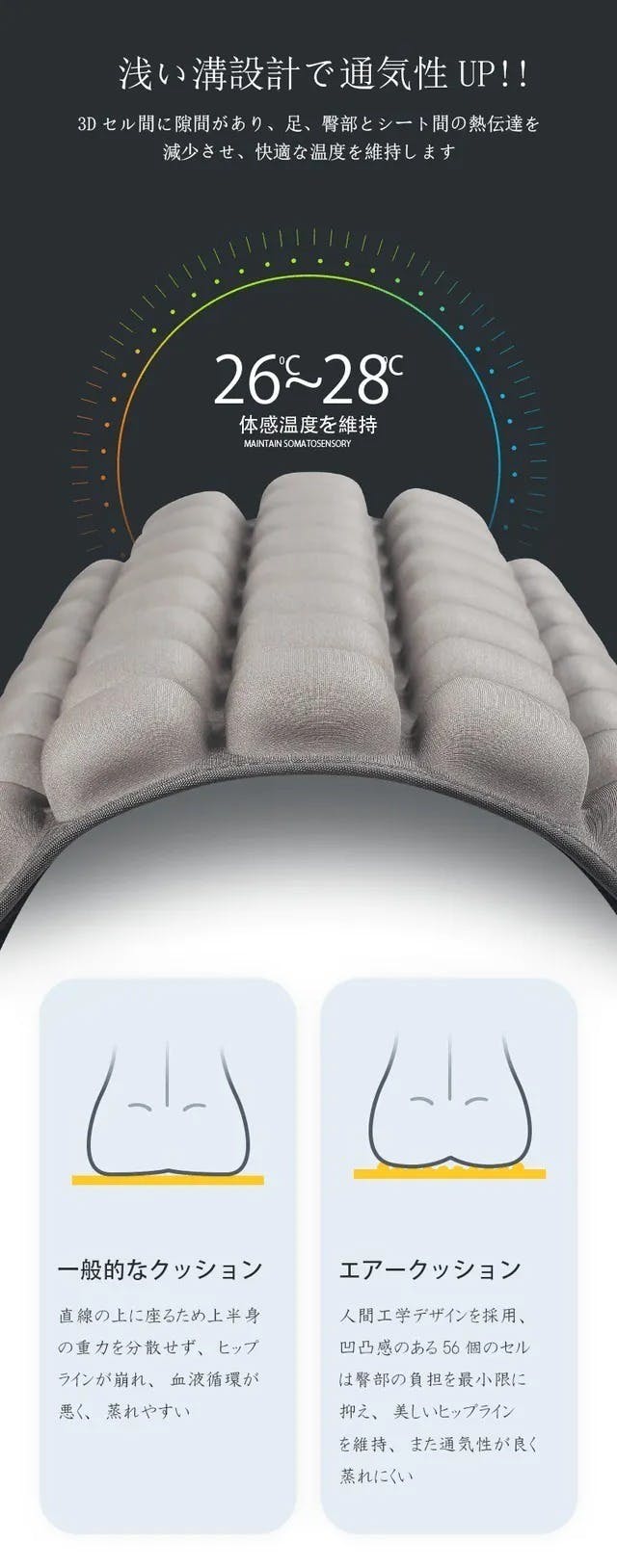 56個のエアセルがお尻にフィットし、長時間座っても美しいヒップラインを崩しません。