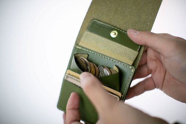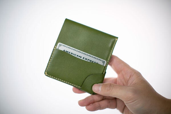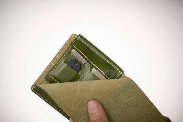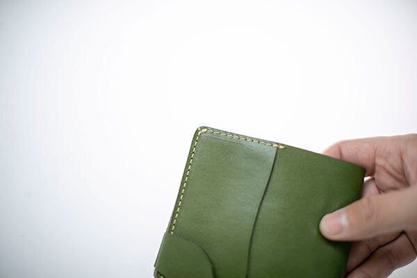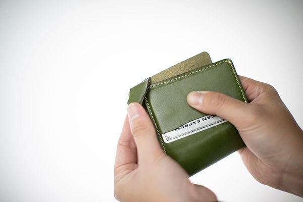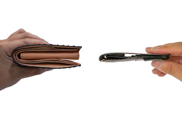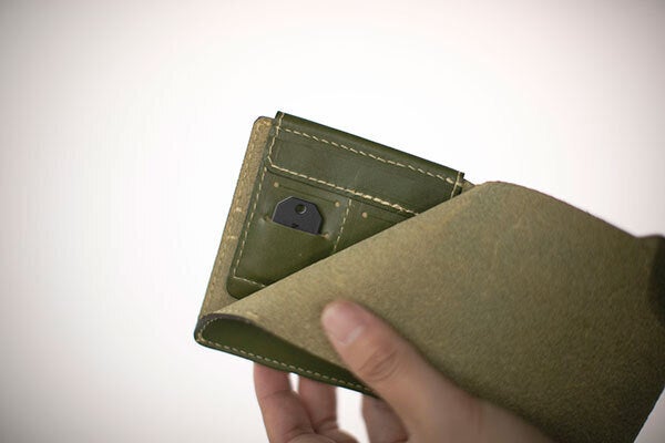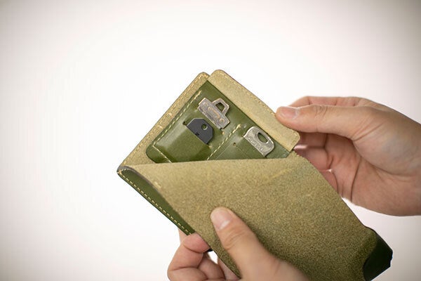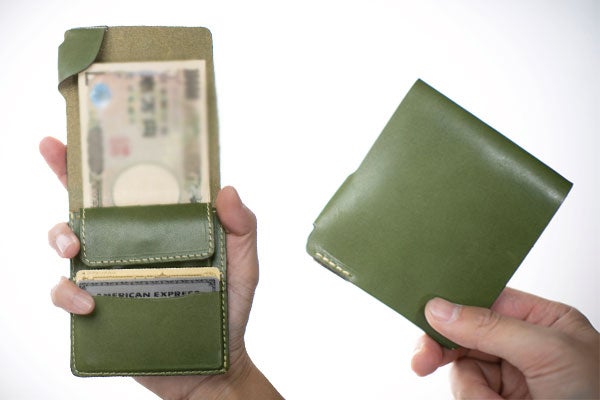 一般的な二つ折り財布に比べて薄くなるように設計しました