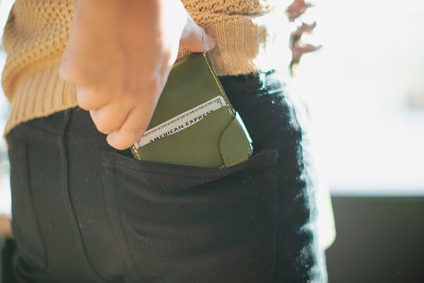 薄い財布なのでポケットにも引っかかることなくスムーズに収納できます。