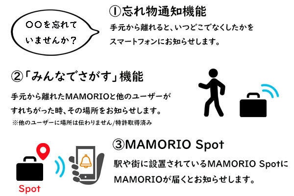 MAMORIO(紛失防止タグ)を搭載したお財布です。万が一お財布をなくしてしまってもスマートフォンからアプリにアクセスすれば、「いつ」・「どこで」お財布を忘れてきてしまったのかわかります。