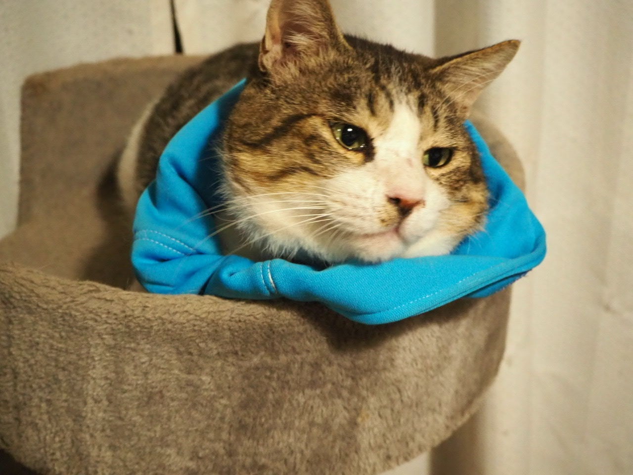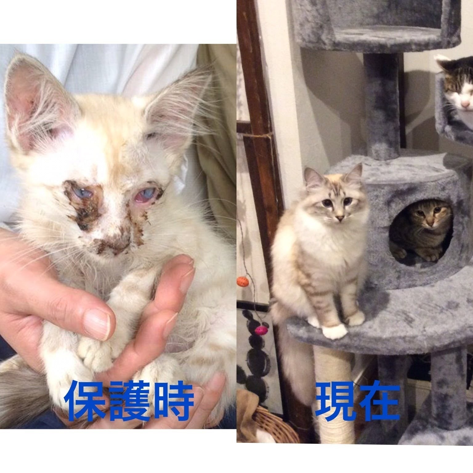 子猫だったので、里親を探す予定でしたが、血液検査でエイズ陽性が出てしまい諦めました。