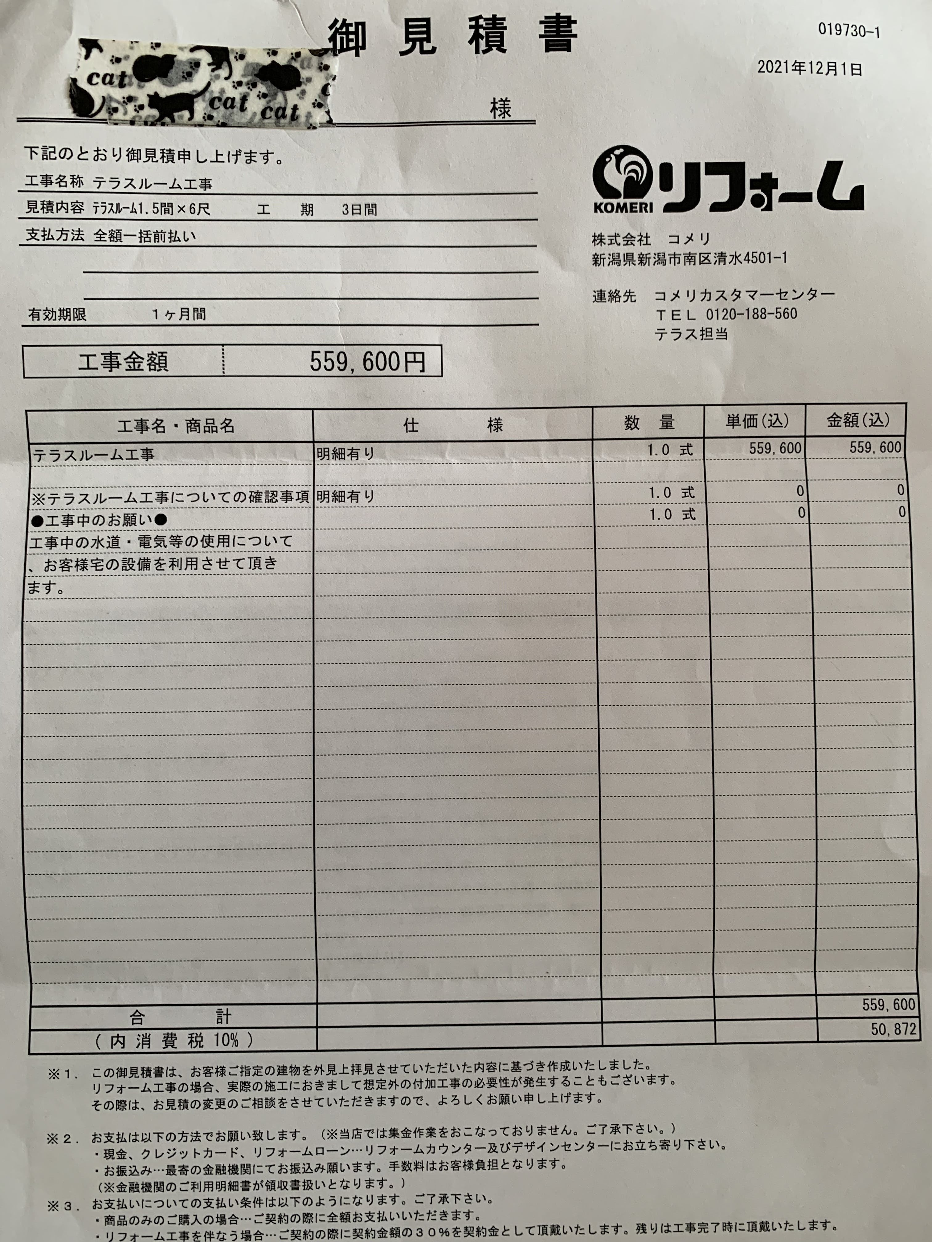 1月中までにはテラスルームの設置を完了させたいとおもっています。