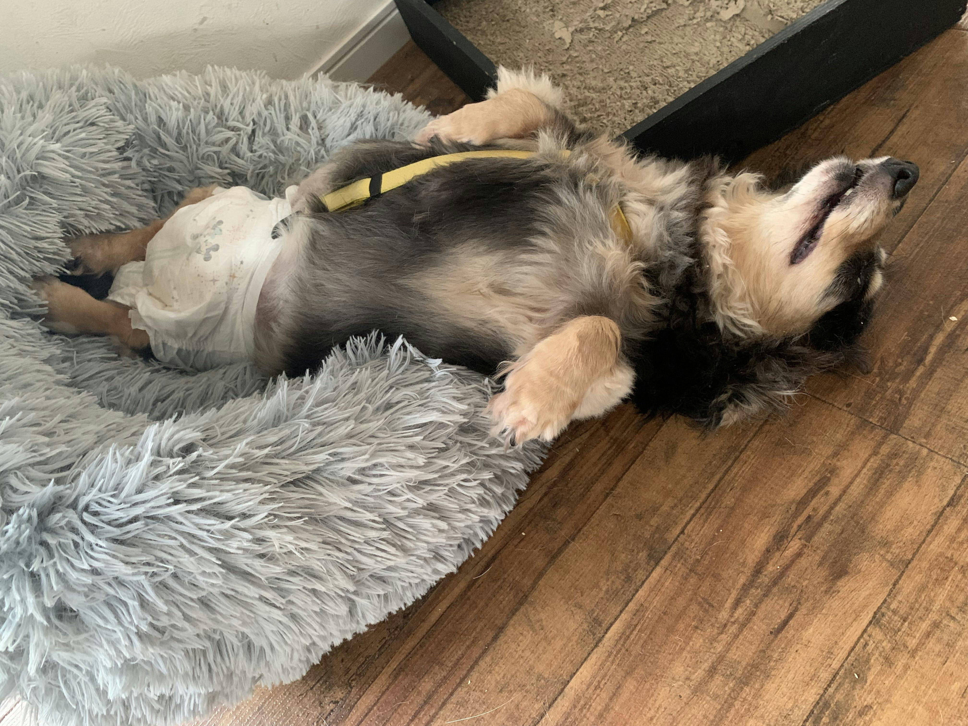2年前に保護した乃美ちゃんもGOONのLサイズ(人間用オムツ)を履かせられているけど、幸せそうに寝てる姿見ると、