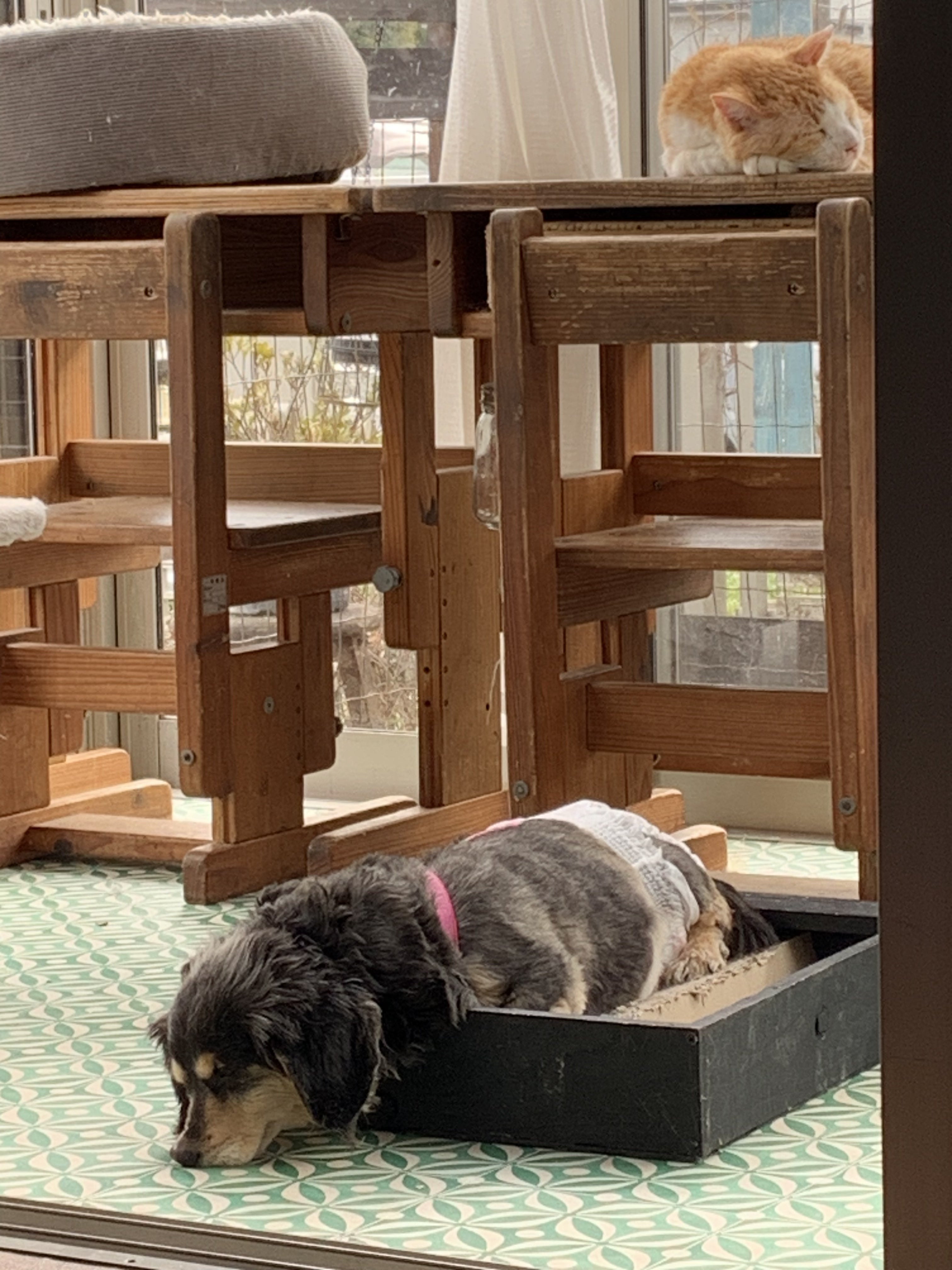 一番ひどかったととちゃんも最近は気持ち悪さもないようでリラックスしています。