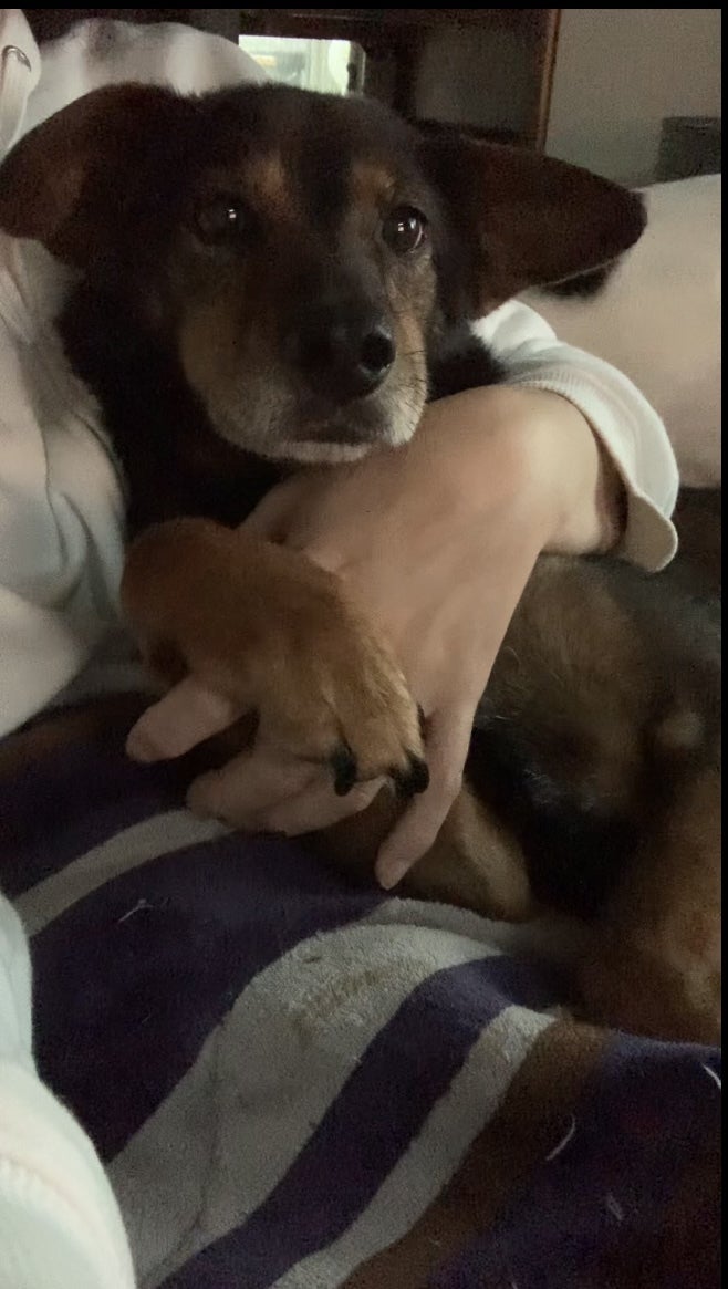 のの子は雷が苦手で、ずっと私に抱きついていました。