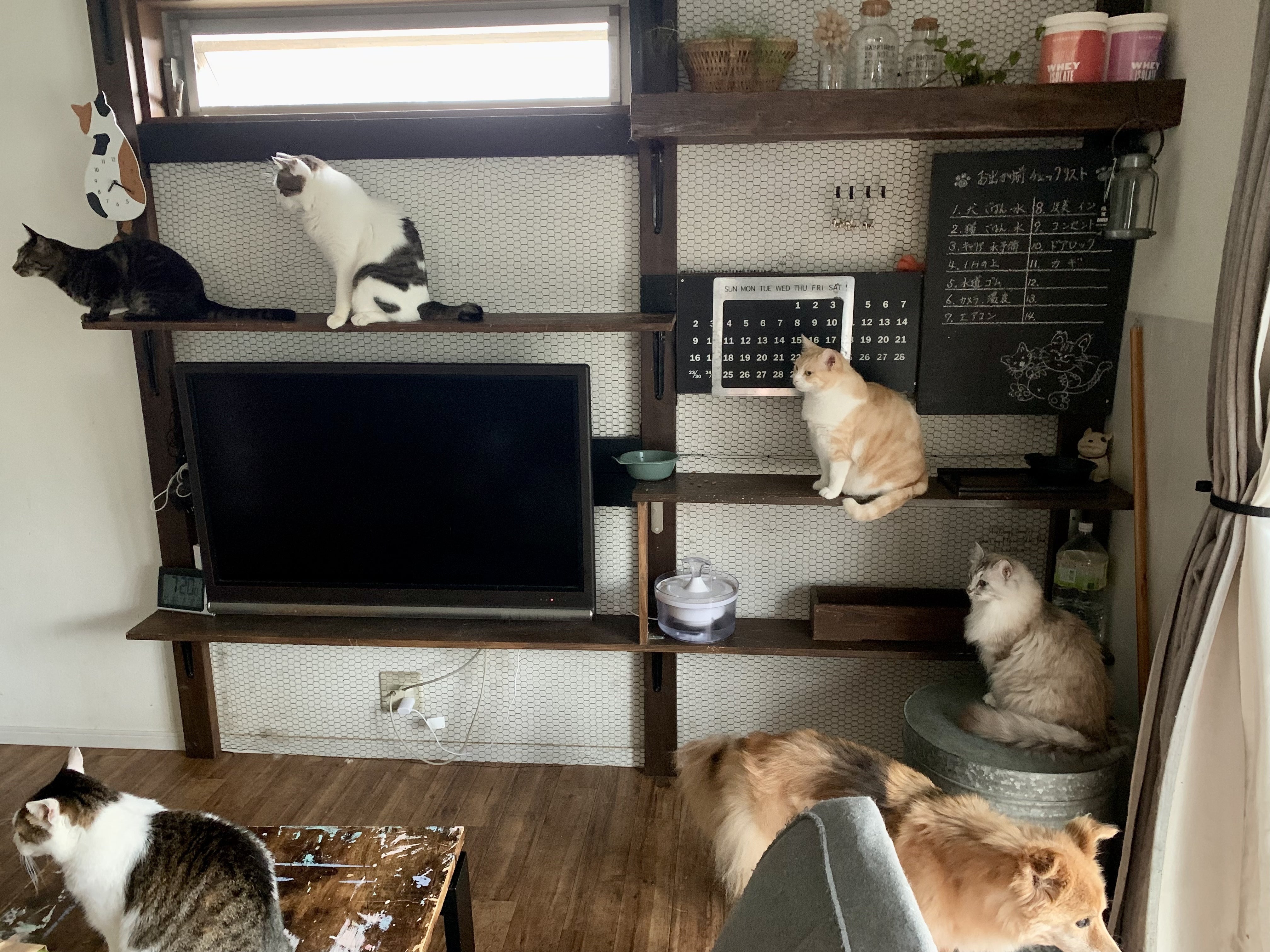 ニャン達は朝起きて来るとご飯待ち。