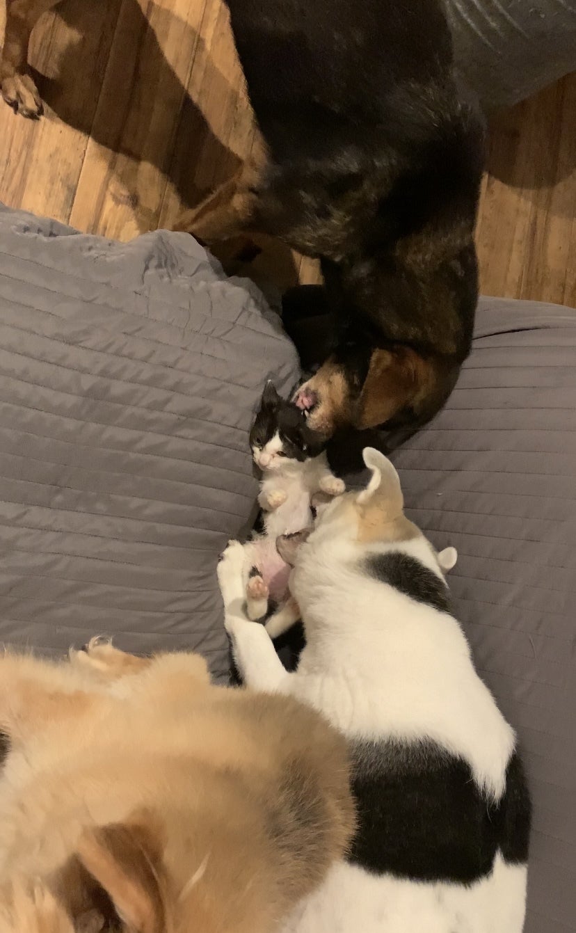 子猫なら大きいニャン達はすぐ受け入れてくれるから。