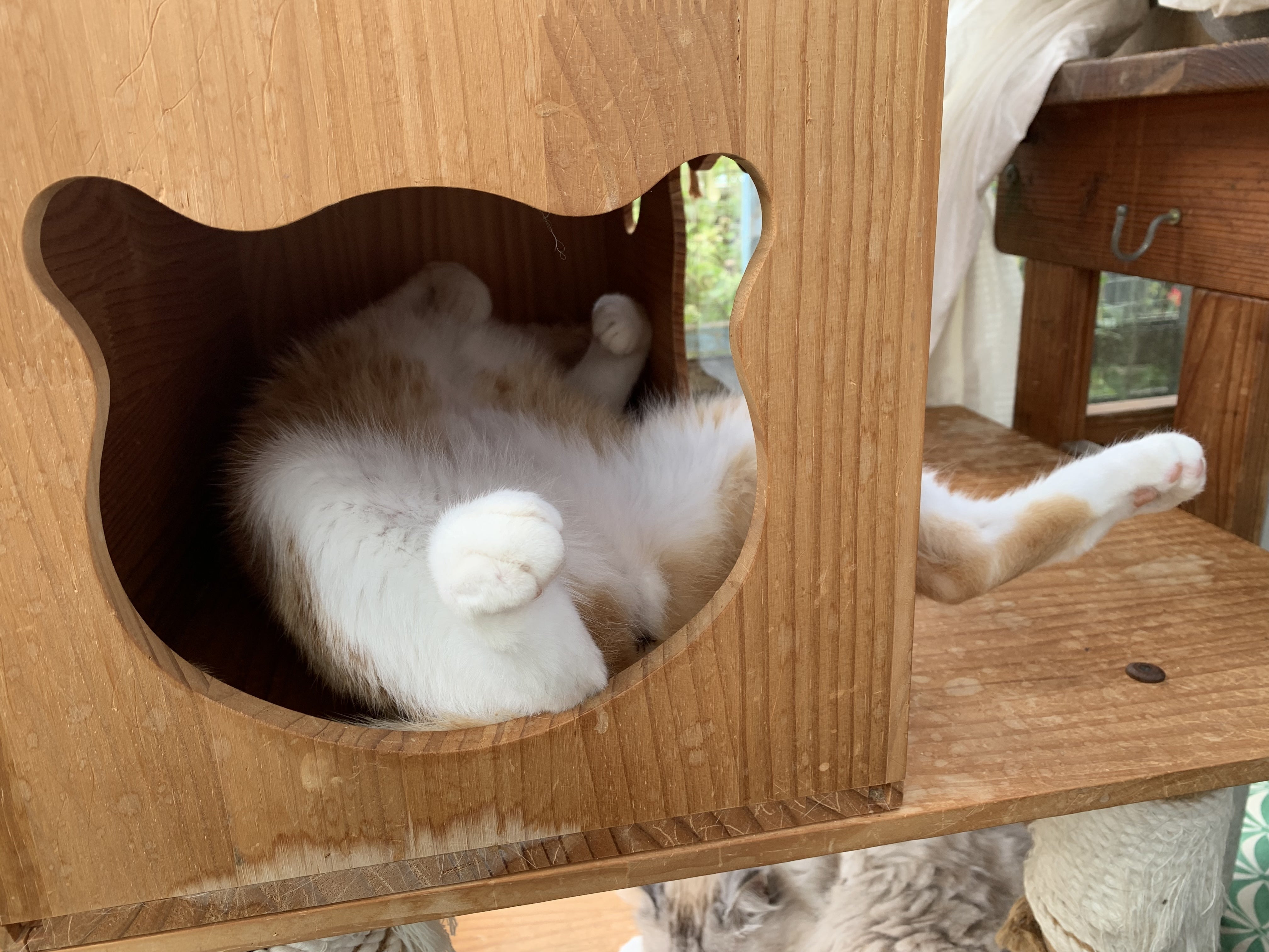 昨日の朝、病院に行く前も大股開きで寝ていました。
