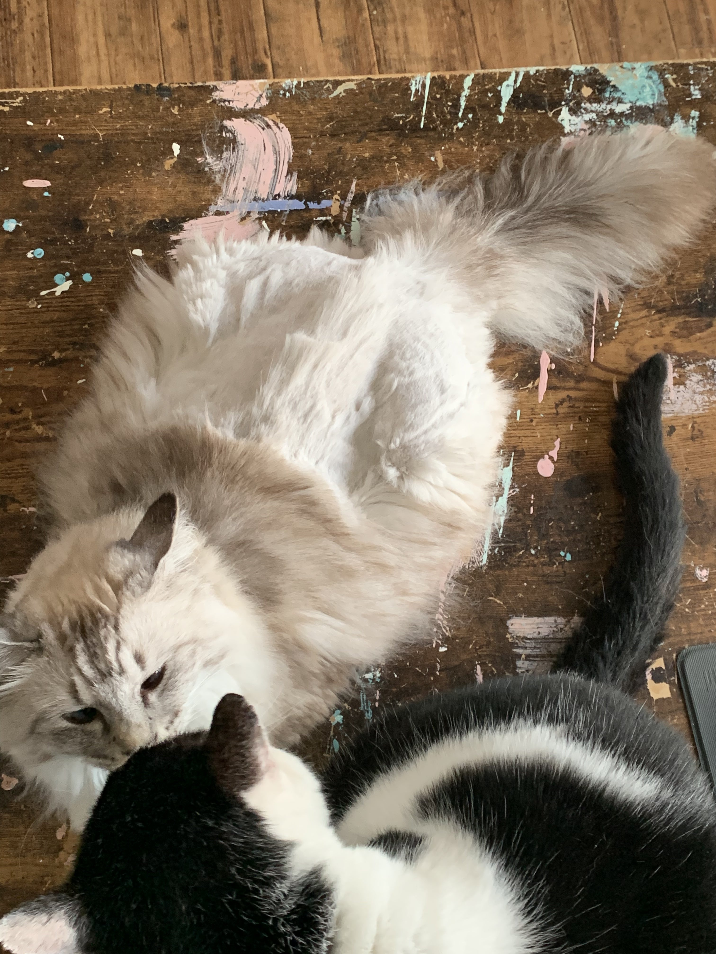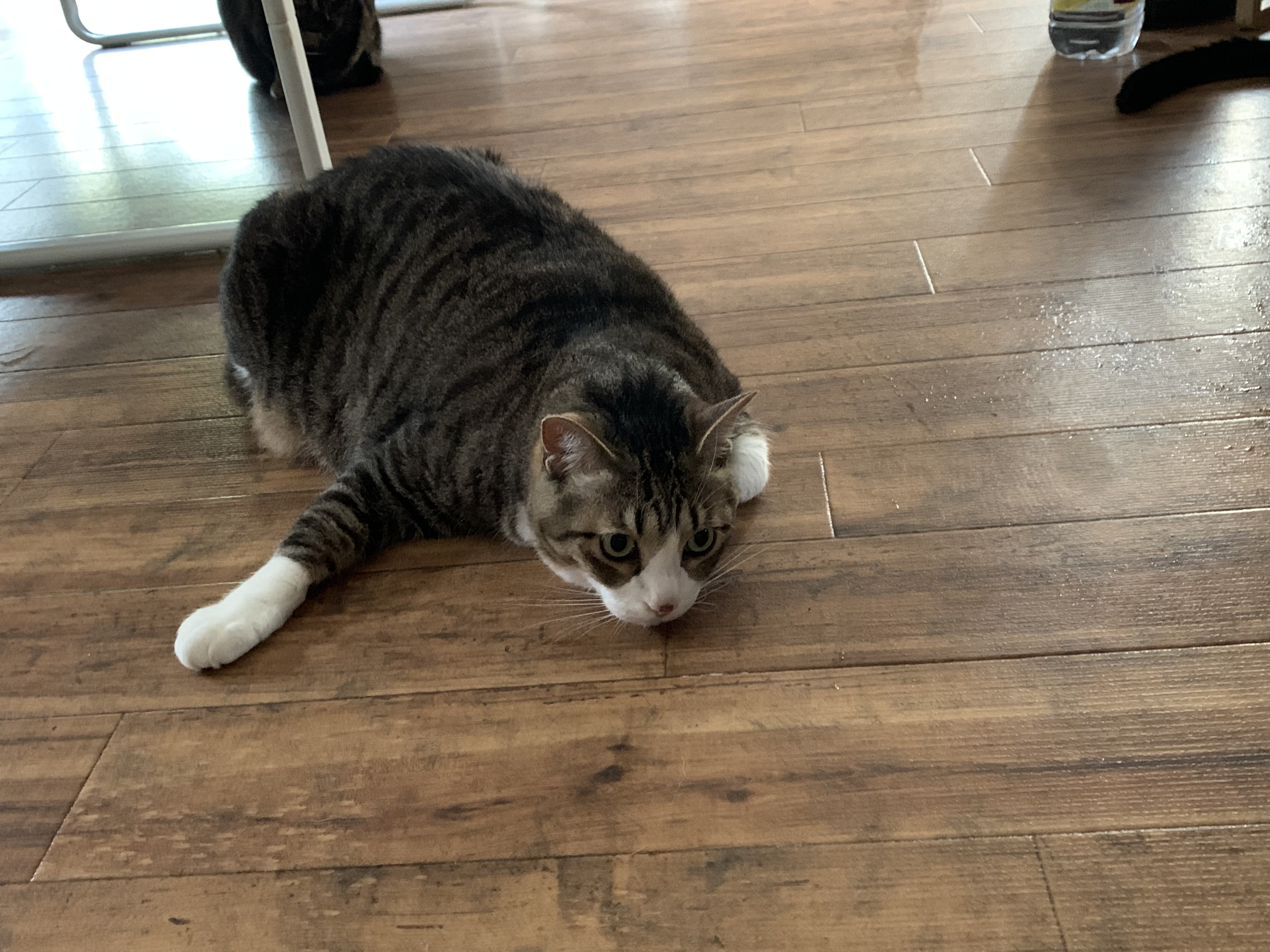 ニャン達にも害はないんだけど、塩素系の匂いが好きな孝太郎は 床にへばり付いていました。