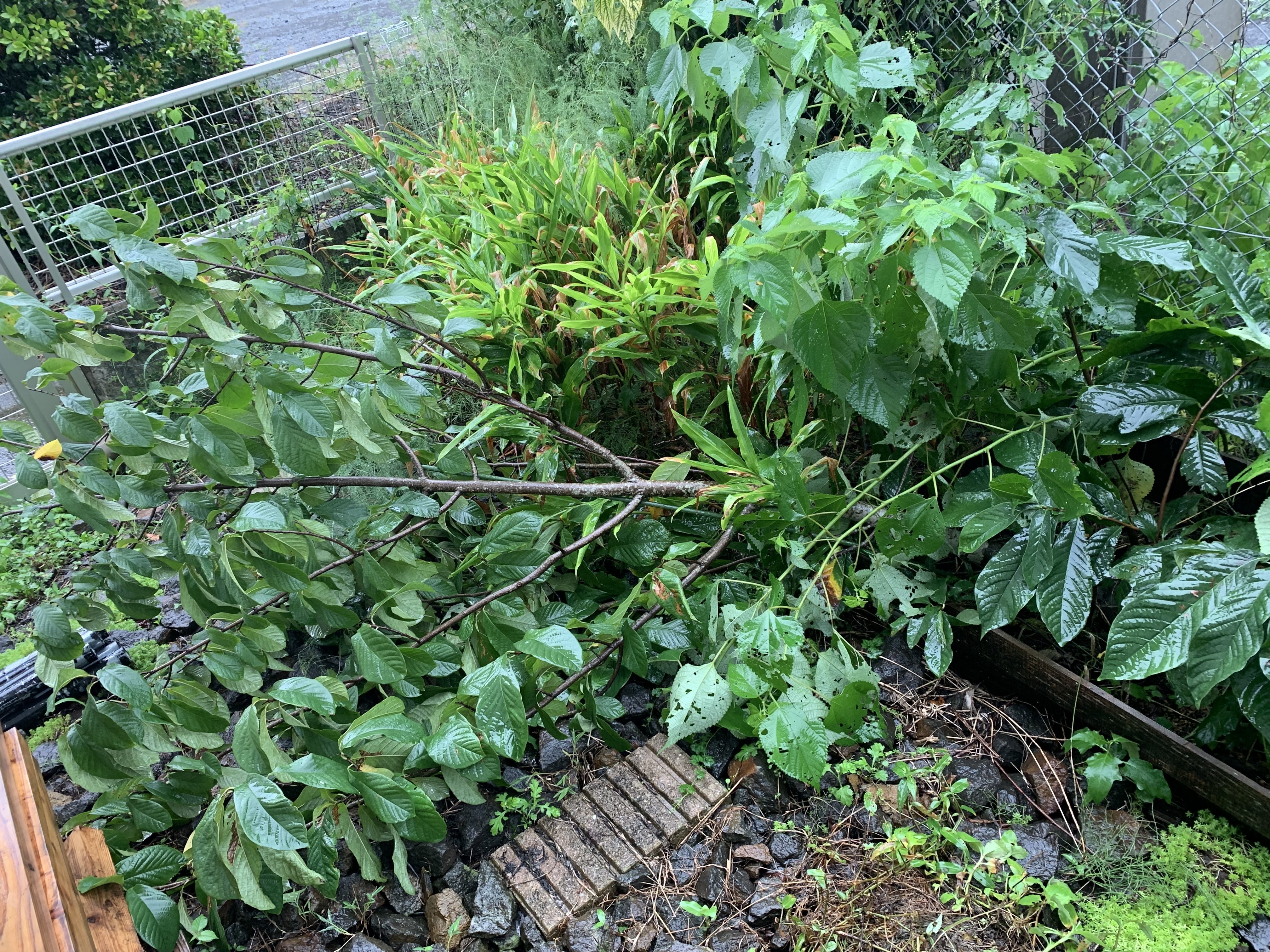 台風の後 家などには被害がなくほっとしたのですが、庭のポポーの木が倒れてる…