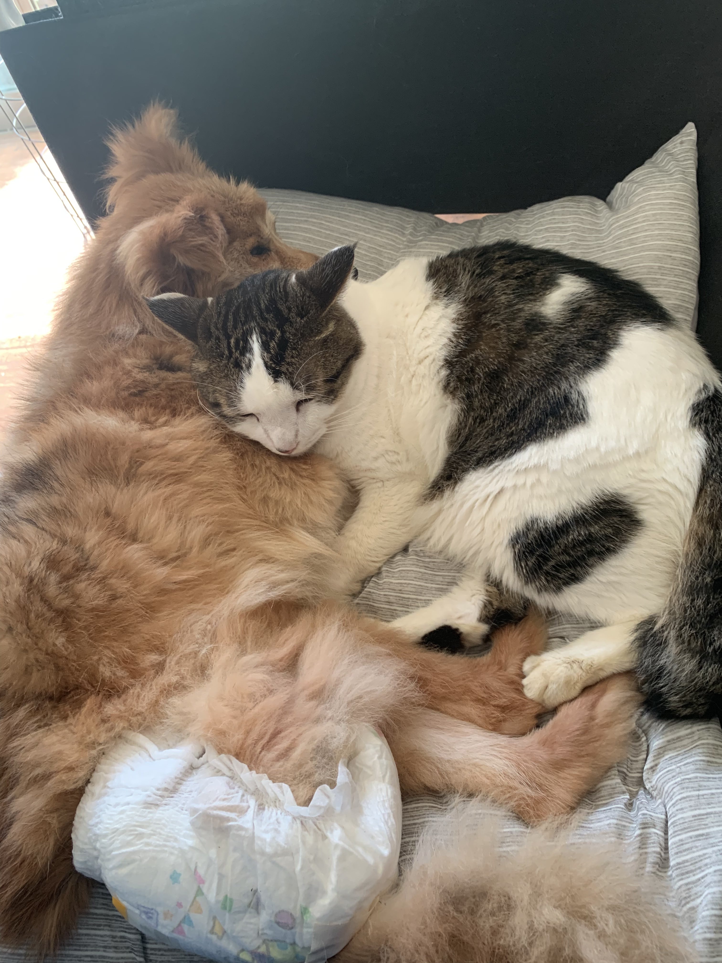小梅ちゃんに添い寝してくれるにゃん達
