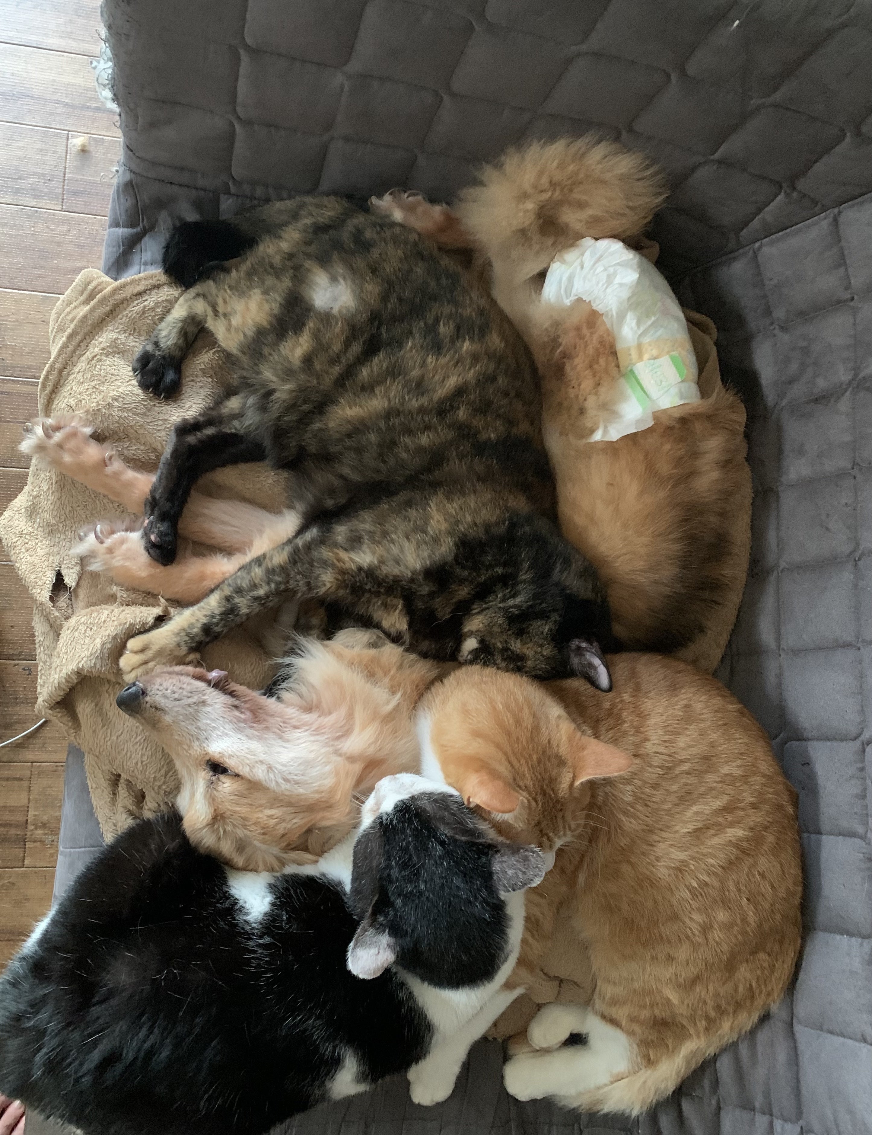 小梅ばあちゃんが寂しくないように寄り添ってくれるニャンズ♪