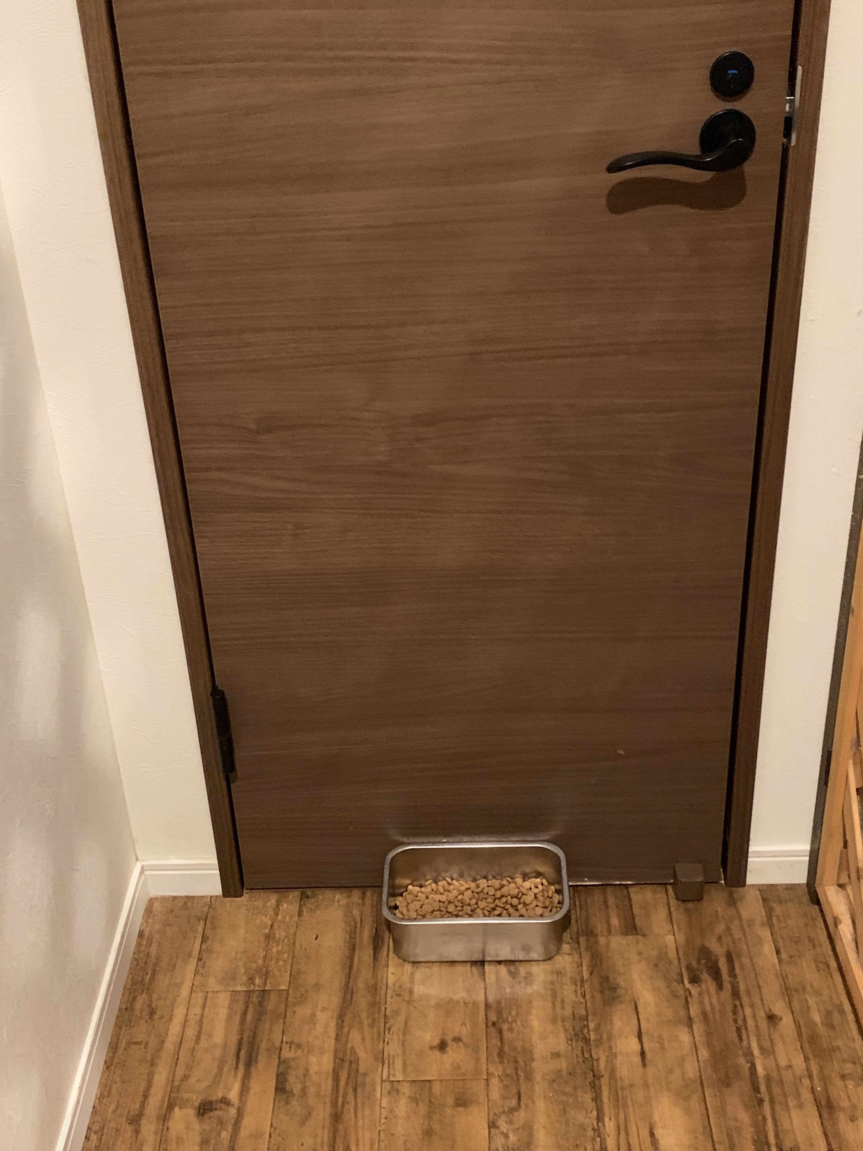 そこで、ドアの前にご飯を置いてみました。