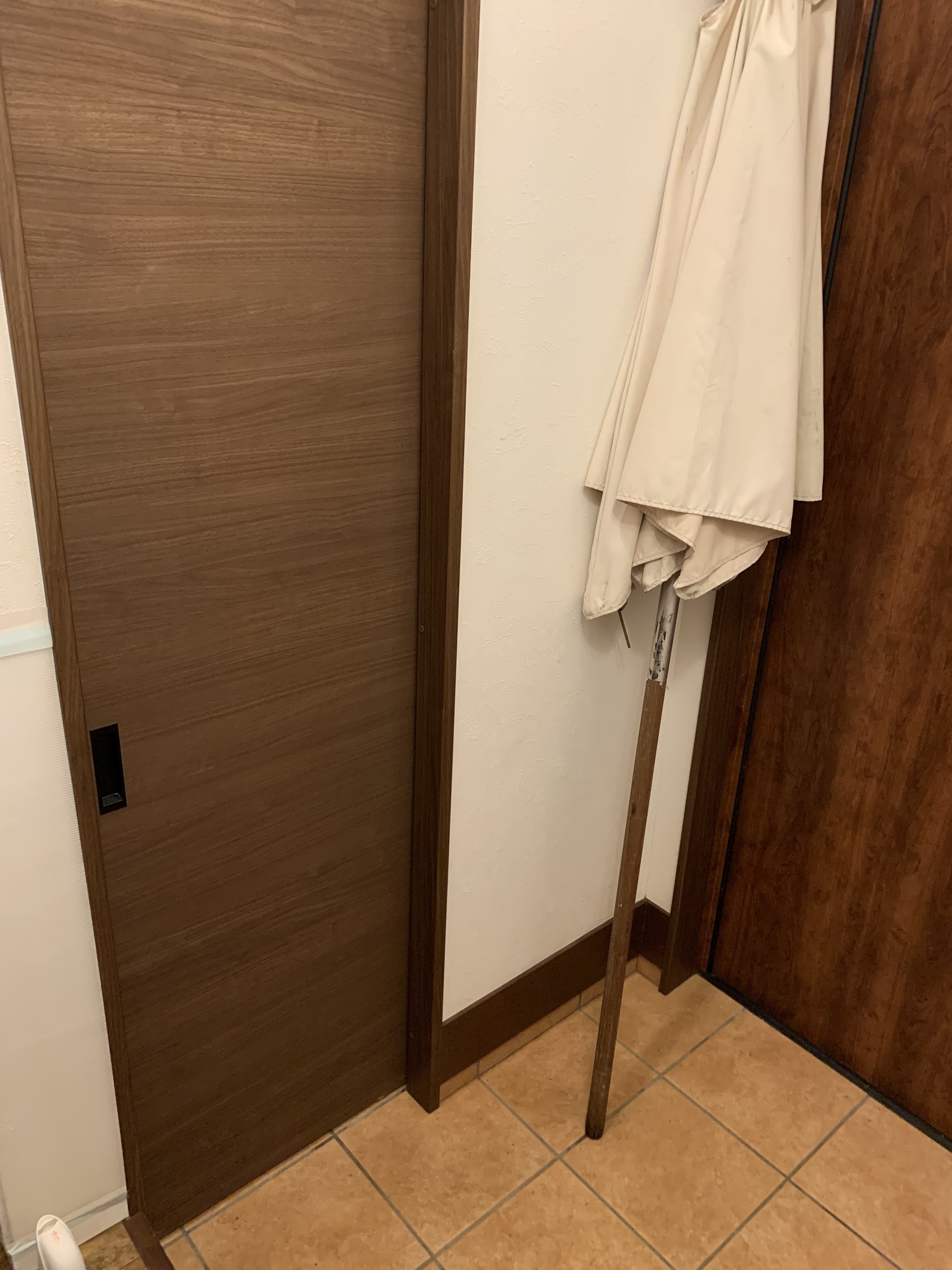 モップを内側から斜めに立てかけ開けると倒れてくる仕掛け!