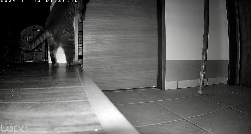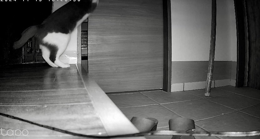 モップを内側から斜めに立てかけ開けると倒れてくる仕掛けをして一ヶ月。