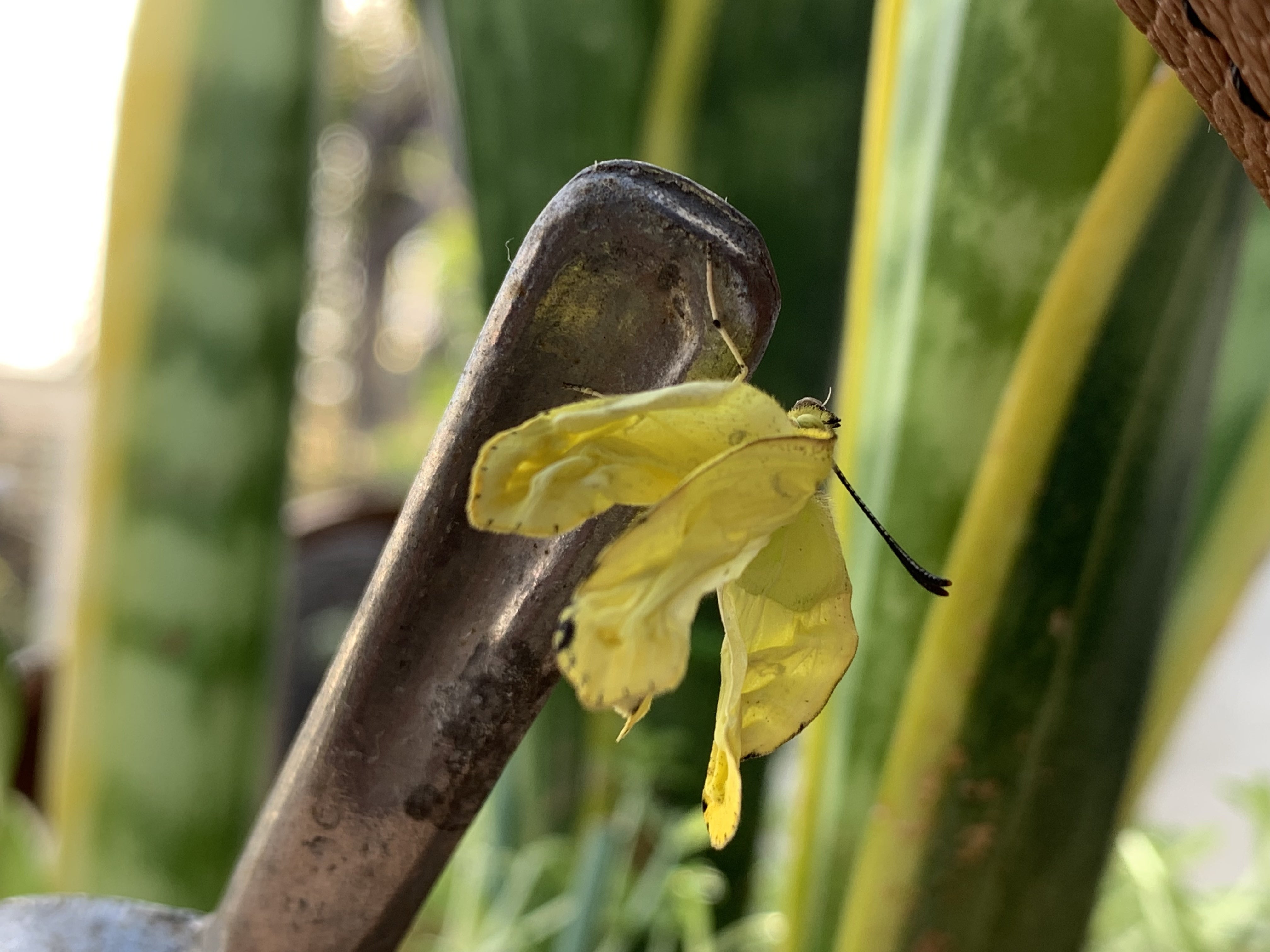 今朝外に出ると羽化したばかりで羽が縮んだ蝶々が。