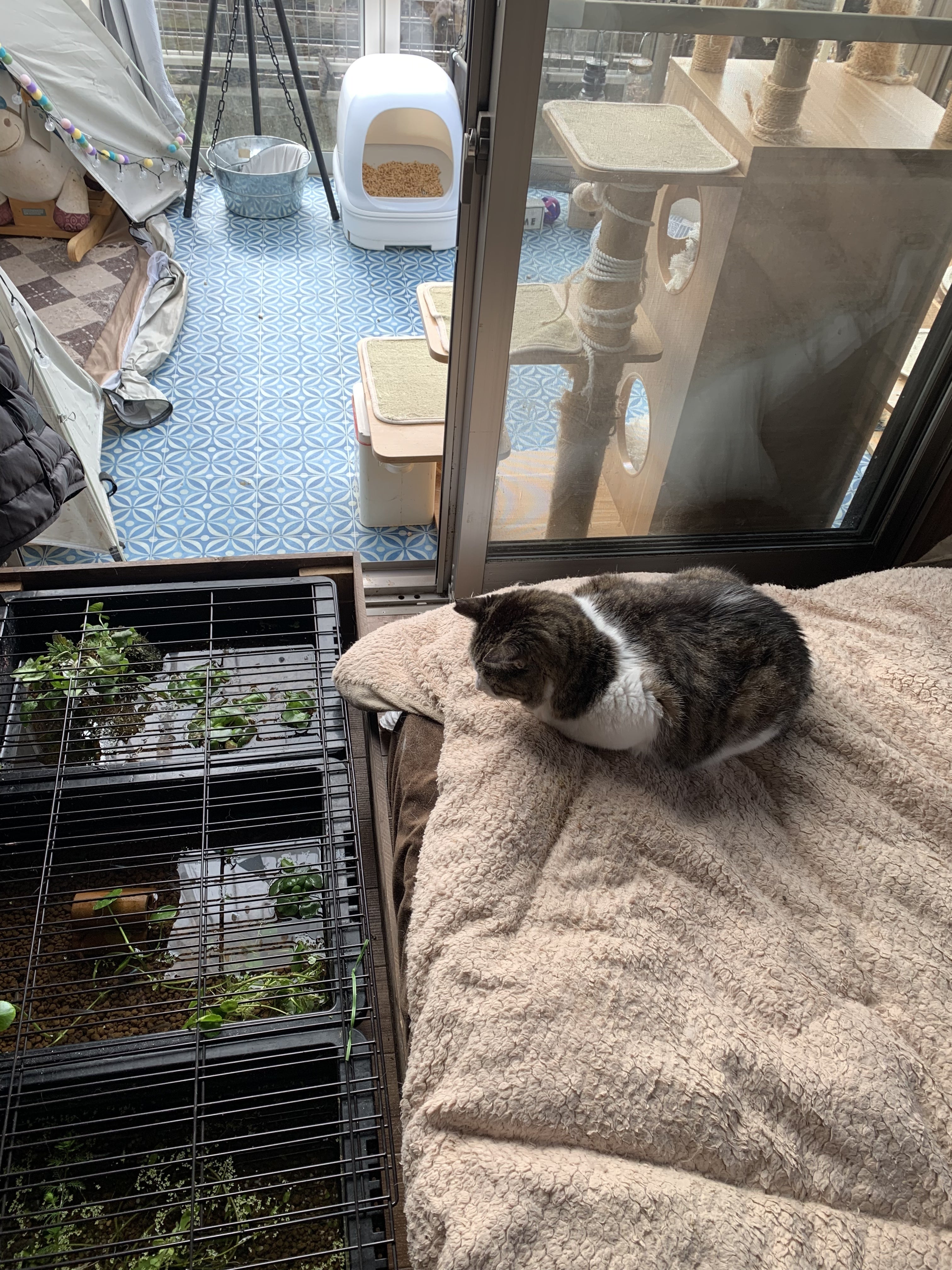 金曜日から県外に出ている息子とその同僚3人が泊まりに来る為メダカさんをエイズキャリア部屋に移動。(布団をひくスペースが無かったので)