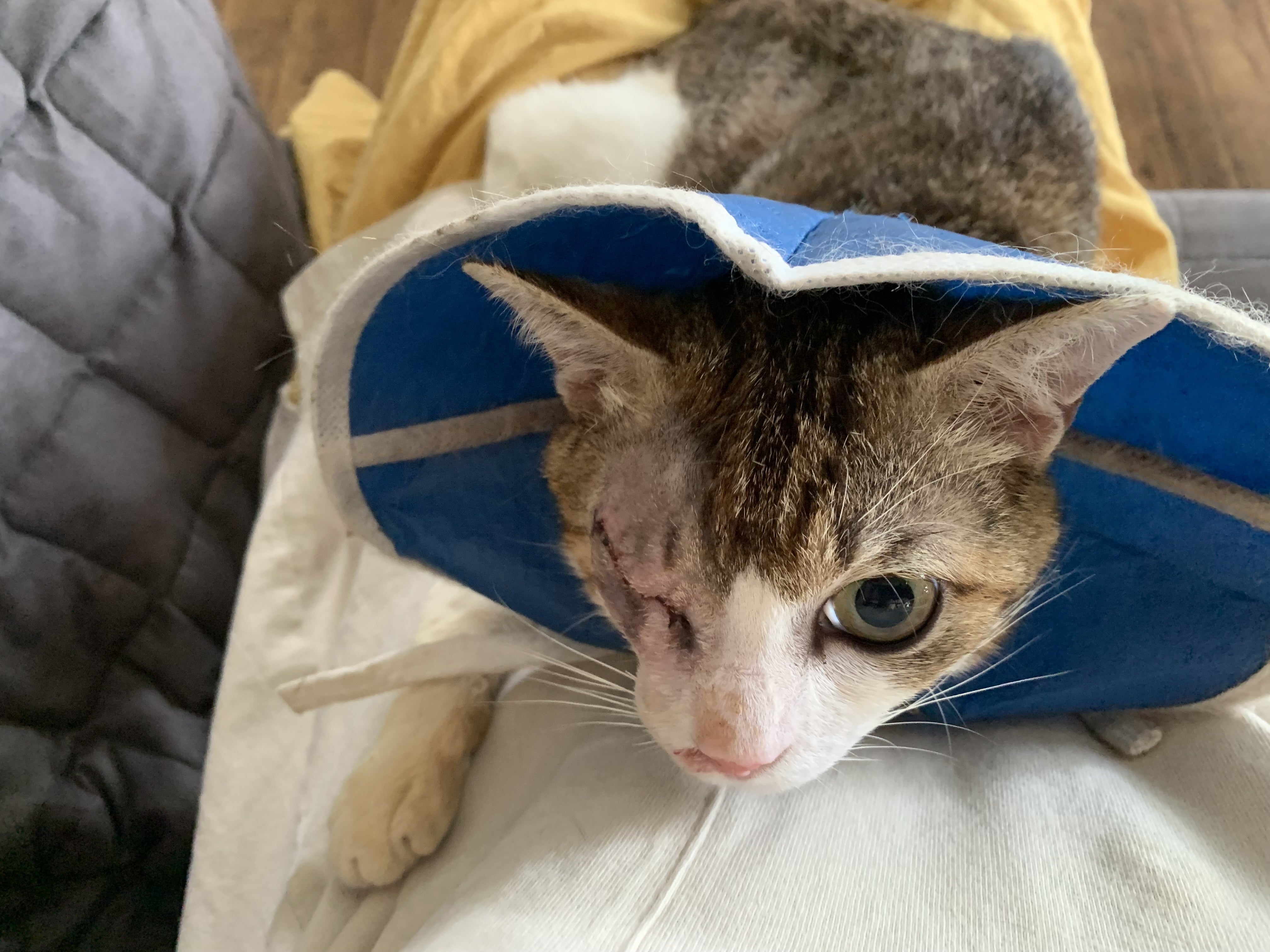 片目は無くなってしまったけど、嫌なお薬飲んだり、痛くなったりするよりいいよね…