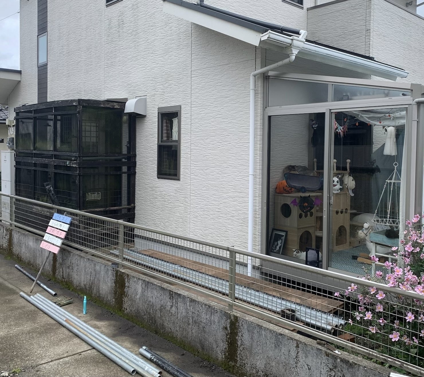 エイズキャリア専用のキャットランが外にはあるのですが、脱走防止のために見張りが必要なんです。