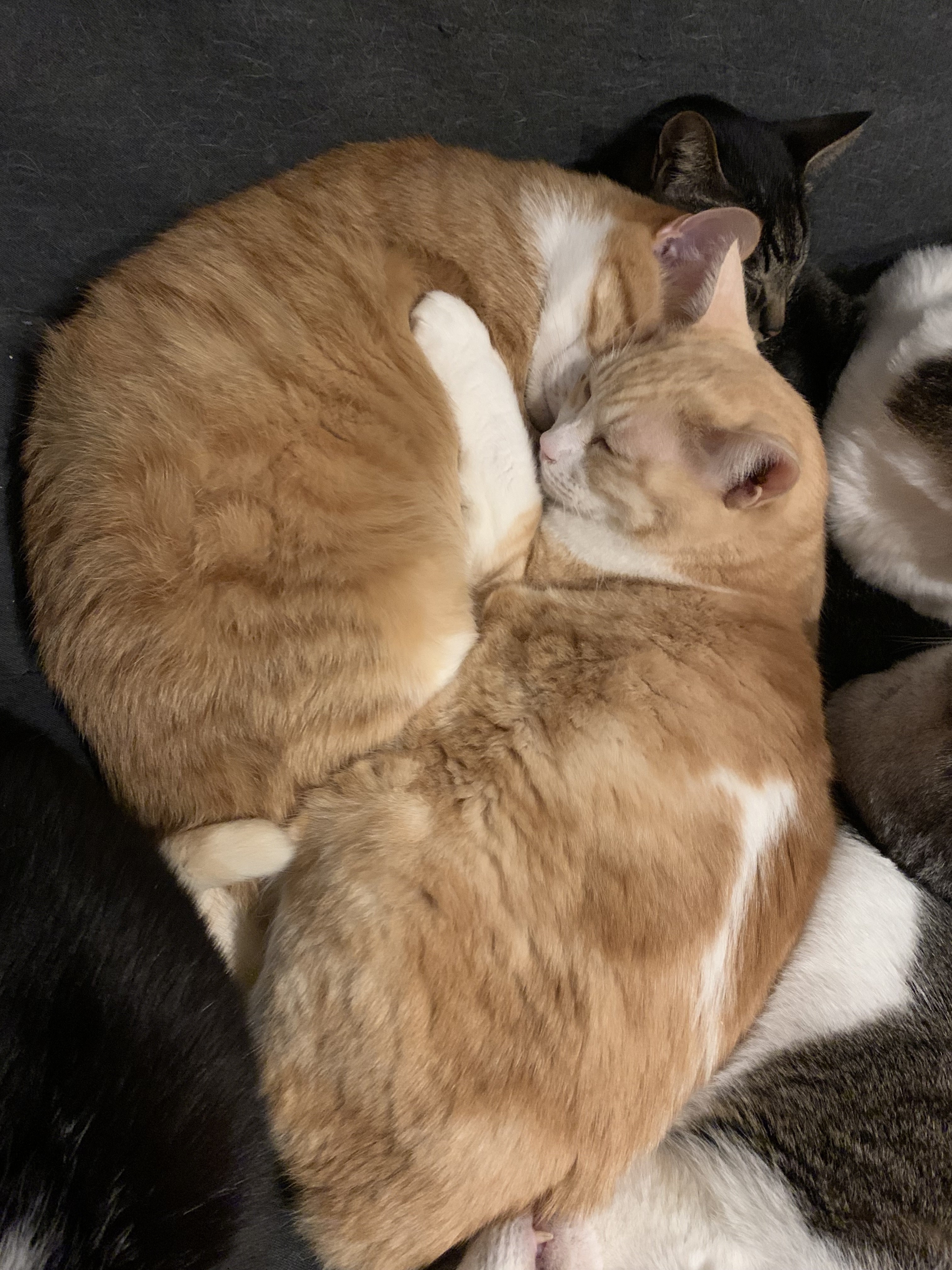 今年の7月に保護した親子猫5匹のうち、4匹がエイズキャリアでした。現在、我が家では既に2匹のエイズキャリアを持つ猫を保護しており、追加で4匹の猫を保護するには我が家のスペースでは厳しい状況です。そこで、皆さまにお願いです。この子たちの幸せで快適な環境づくりにお力を貸していただけませんか?