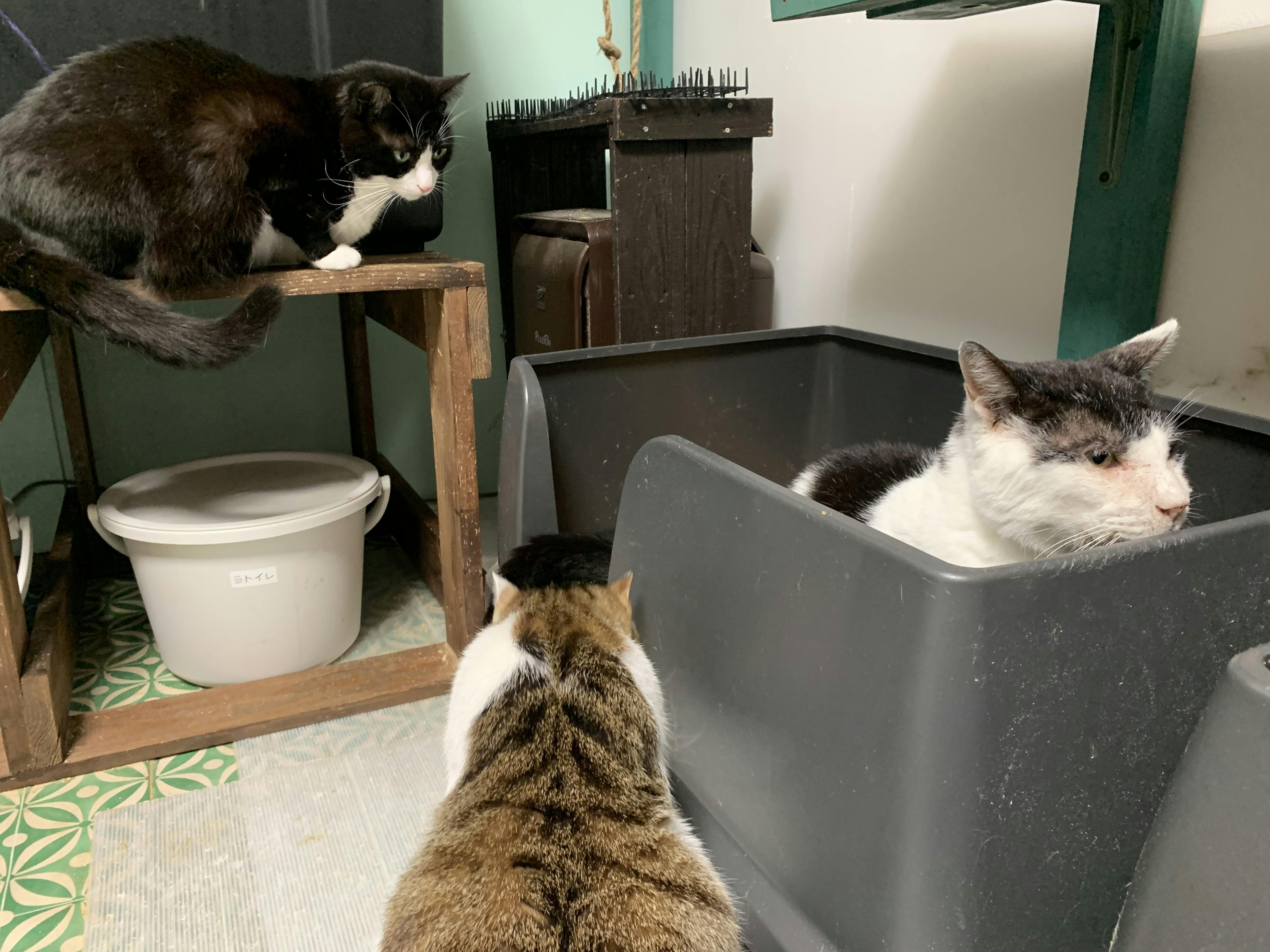 誰かがトイレに入ると急いで来て じーっと待つ。