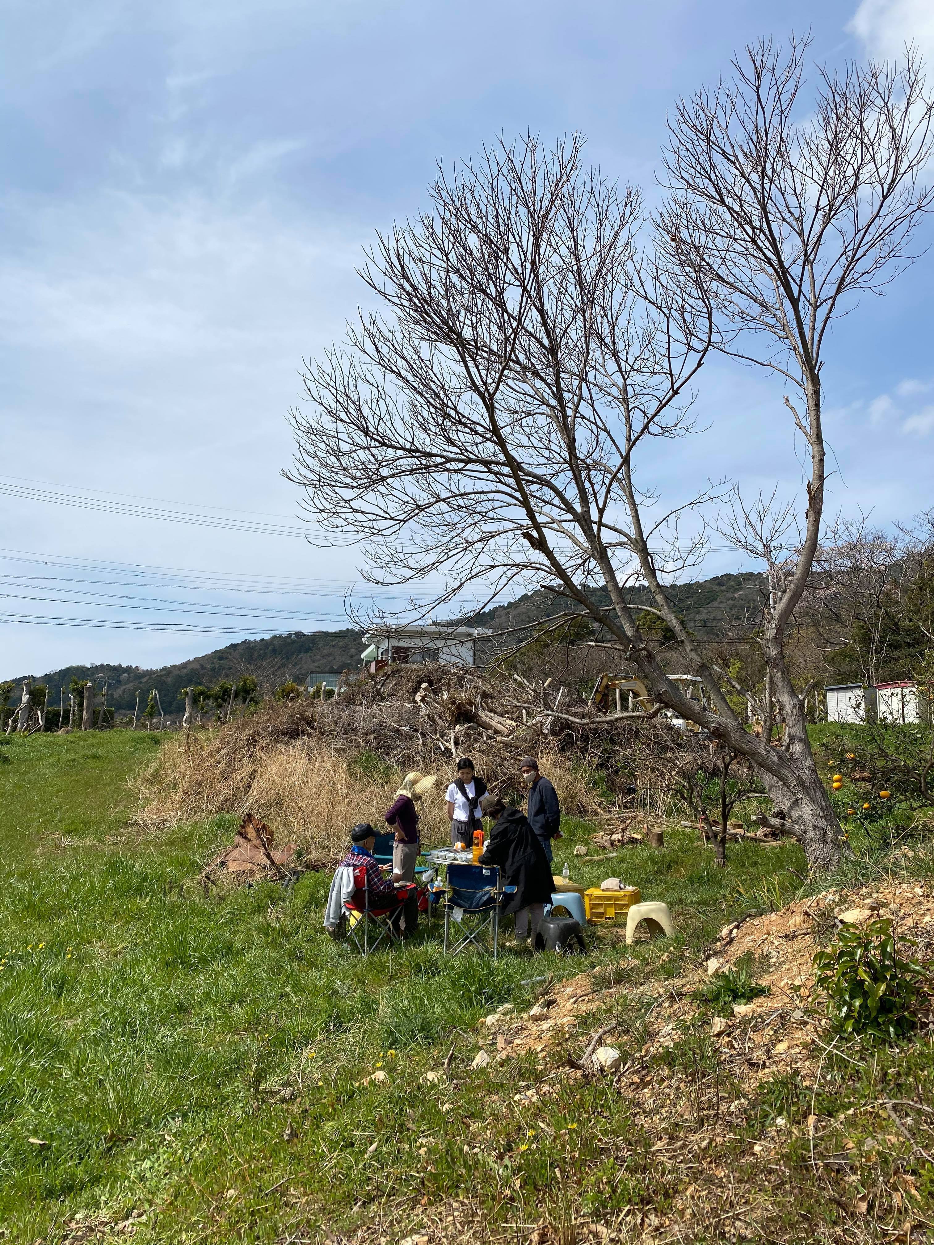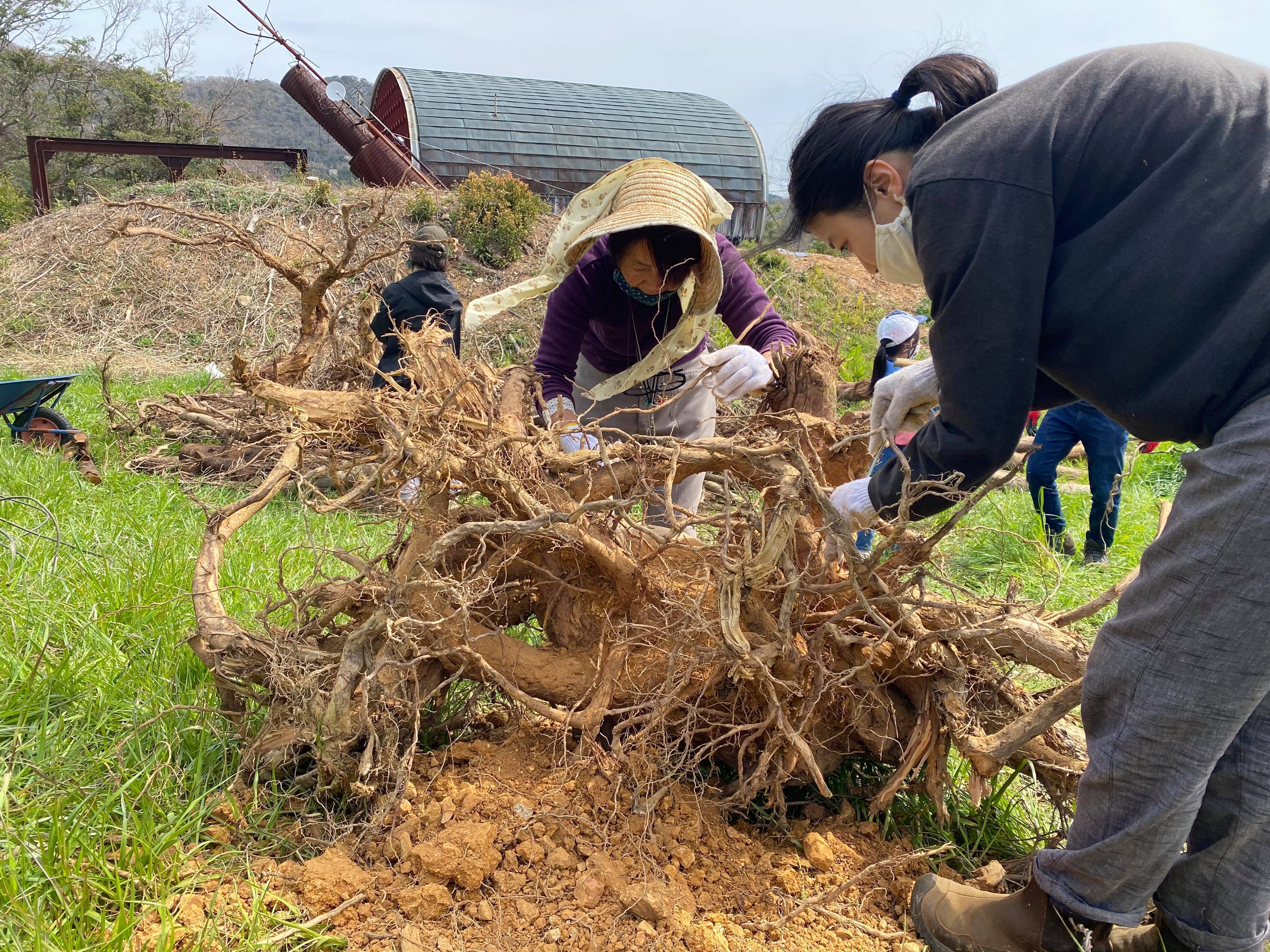 野趣メンバーも何人かは豊橋へ行って、皆で作業をしたり。(後ろにコロッと大きく見えているのが鉄でできたコルゲートハウス!)