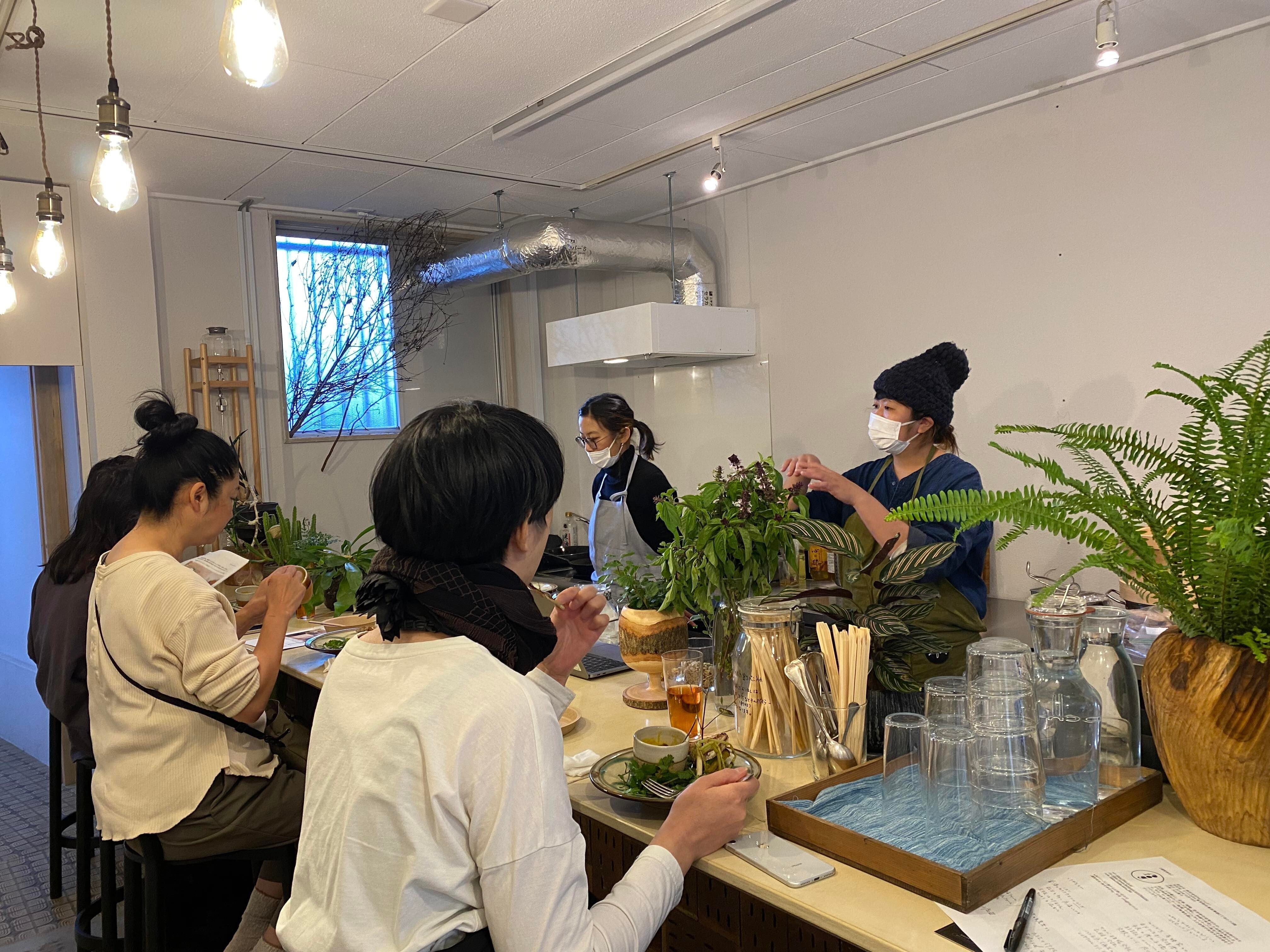 キッチンでは、昼は旬の野菜を使ったプラントベースのワンプレートランチを提供。野菜は契約農家である東京都青梅市のオーガニック農家「Ome Farm」や東京都板橋区の「THE HASUNE FARM」から仕入れます。平日夜は、急遽実施していくこととなったカジュアルなタコスバー!(もちろん野菜中心で最高においしい!)週末夜は、自然との繋がりや持続可能な循環を目指す生産者から仕入れた食材との「出会い」をテーマにしたコースディナーをご用意します。